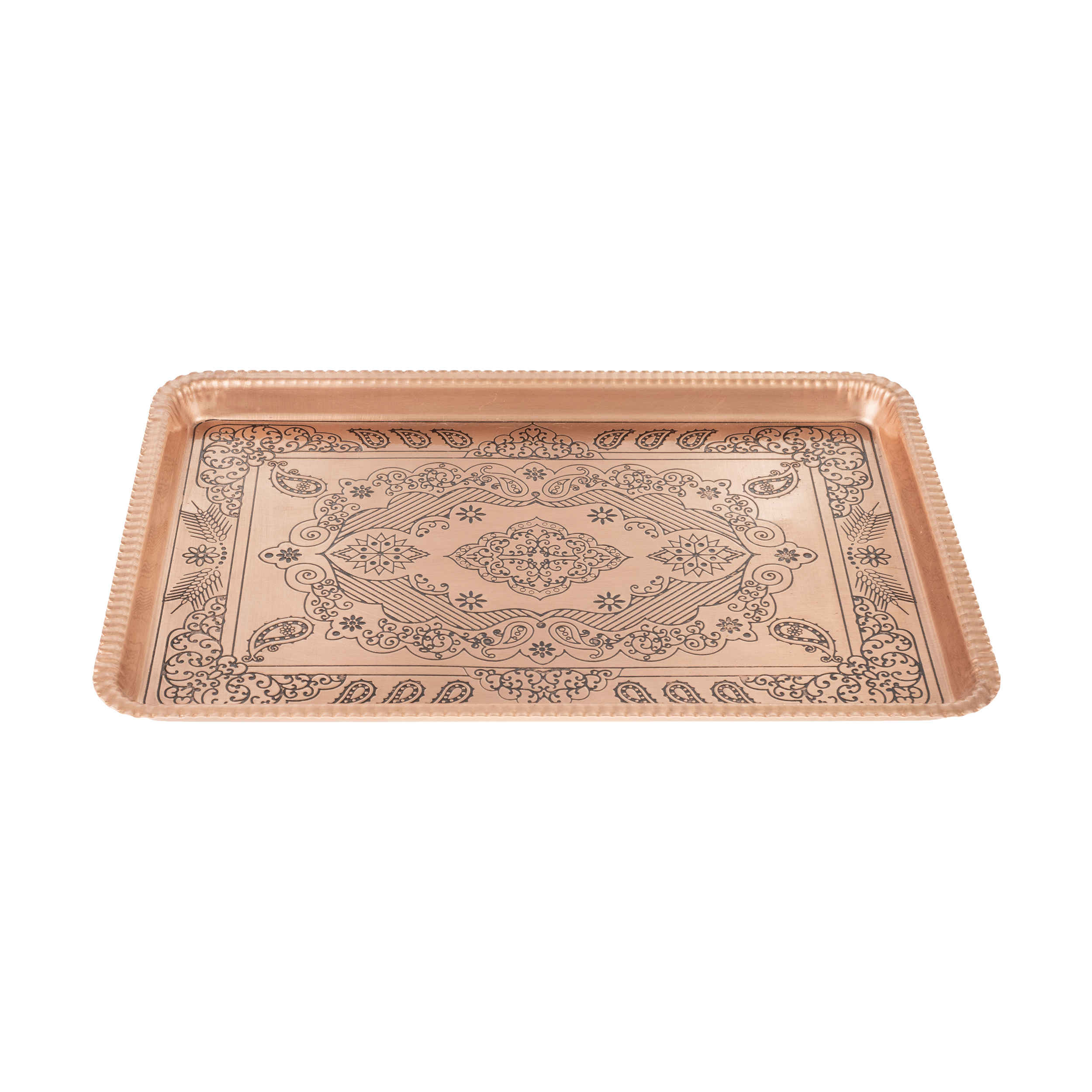 Immerse yourself in the timeless allure of our Copper Serving Tray, meticulously handcrafted by skilled Persian artisans with a hammering theme. This exquisite tray exudes an elegant blend of tradition and craftsmanship, making it a unique addition to your hosting essentials. Its versatility allows for serving tea, presenting an array of coffee assortments, or displaying an assortment of delectable treats, each moment accentuated by the tray’s cultural richness. Crafted by skilled hands, this copper tray stands as a masterpiece of artistry and functionality. Its hammered design not only brings an element of sophistication but also adds a touch of authenticity to your serving experience, showcasing the intricate workmanship passed down through generations of Persian artisans. Indulge in the cultural heritage and the timeless elegance that this handcrafted serving tray offers, promising to be a captivating centerpiece for your tea or coffee presentations.