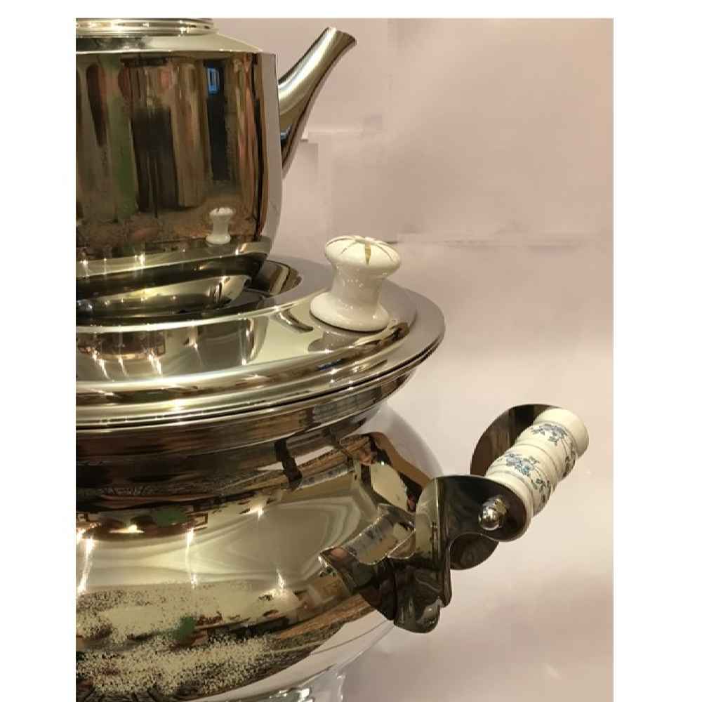 Weight 3500 g Dimensions 48 × 40 × 30 cm Condition New Style Traditional Features Tea Maker Size Medium (4-5 liters) Origin Iran Product Type Electric Samovar Color Silver Function Capacity 4-Liter Technique Embossing Material Steel Pattern Smooth Finish
