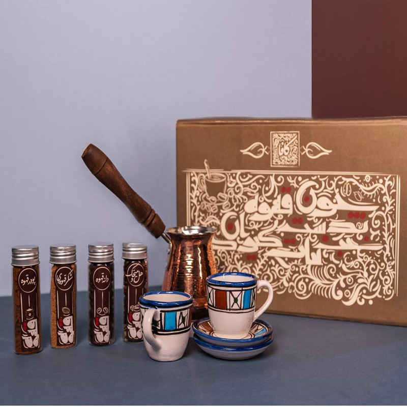 Indulge in the rich flavors of Persian coffee with our exquisite Set of Persian Coffee Cups with Pot Fakhr-Ara. This stunning set is a perfect choice for coffee enthusiasts, offering everything you need to enjoy a truly immersive coffee experience. Complete with a copper coffee pot, two handcrafted pottery cups and saucers, and four jars containing coffee beans, coffee powder, brown sugar, and cardamom, this set has everything you need to brew the perfect cup of Persian coffee. Crafted with care and attention to detail, the pottery cups add a touch of artisanal charm to your coffee moments, making each sip a joyous occasion. Whether you’re starting your day with a morning brew, unwinding with an evening cup, or enjoying a midday pick-me-up, this special coffee set is designed to enhance every moment.