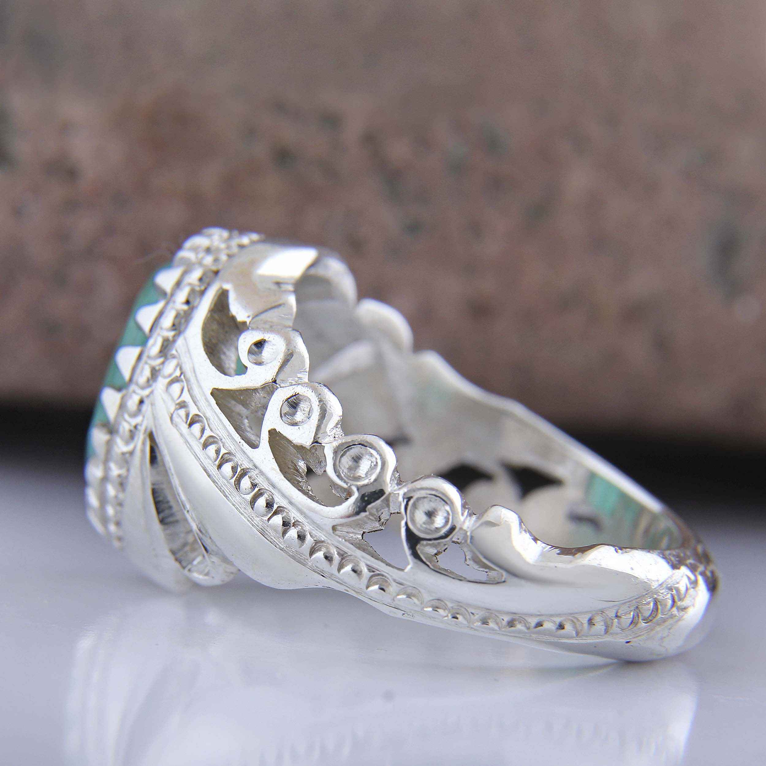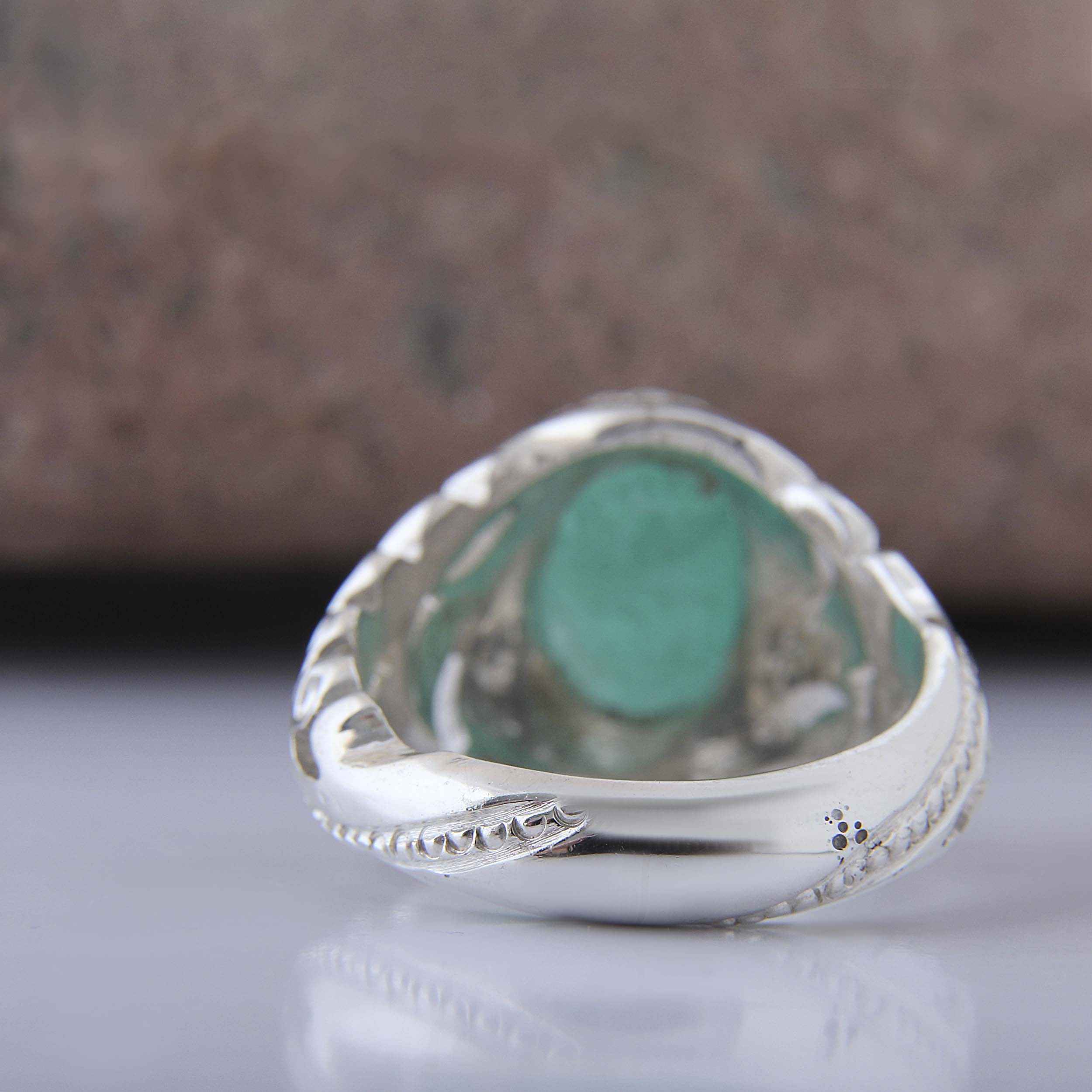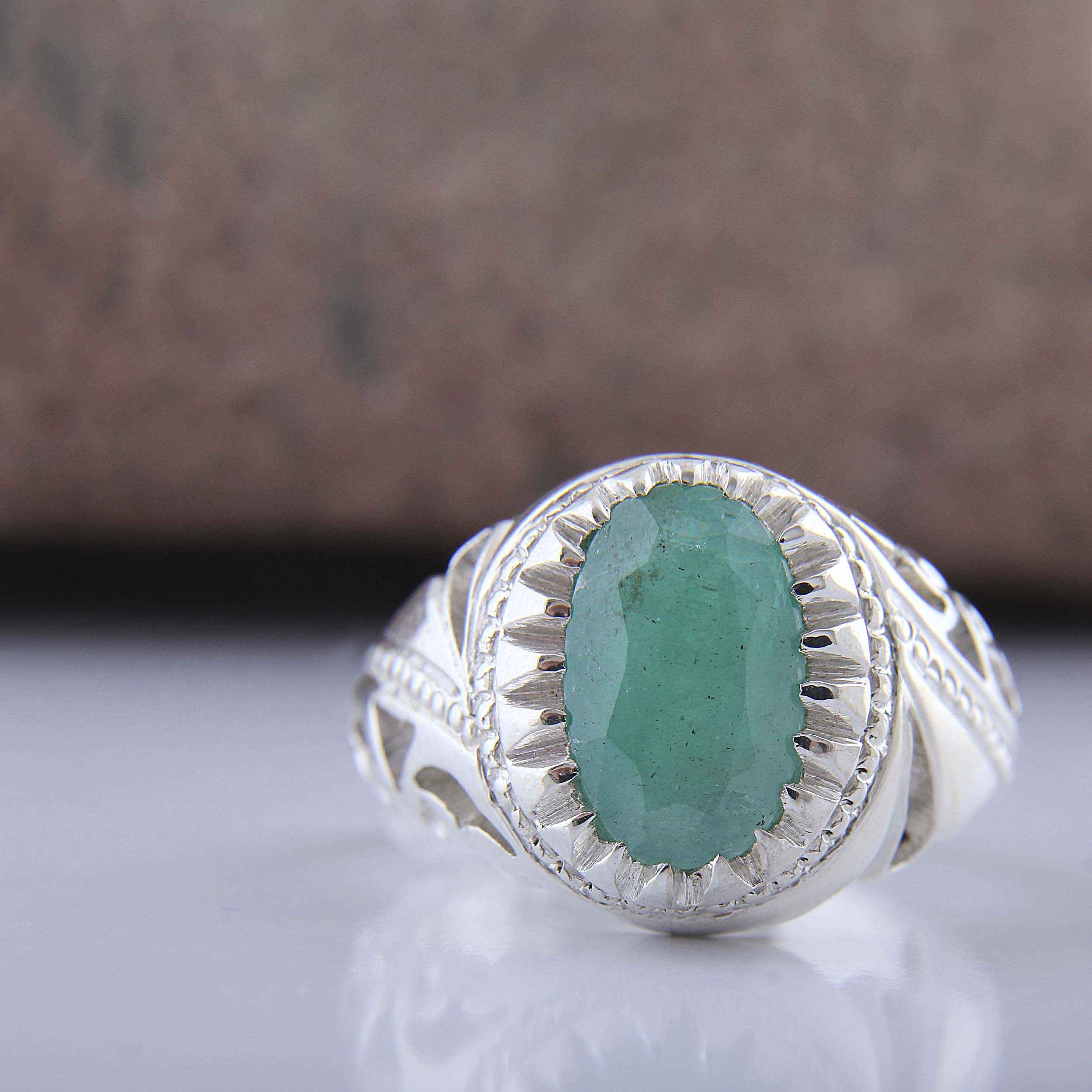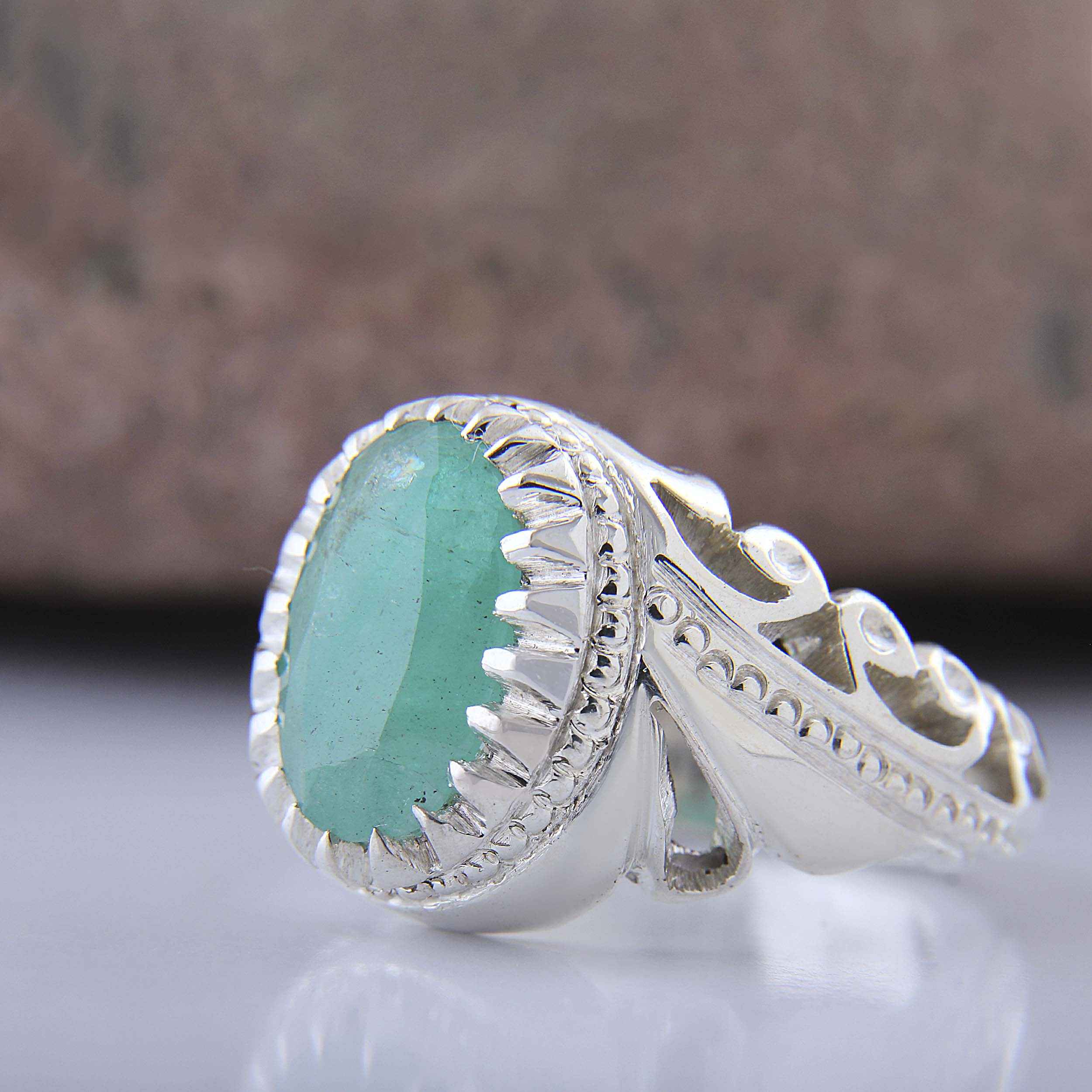 Elevate your jewelry collection with our Green Emerald Silver Ring, a handcrafted masterpiece featuring a stunning Zambian emerald. This exquisite ring showcases the vibrant green hue and natural brilliance of a premium Zambian emerald, meticulously set in a sleek silver band. Each piece is individually crafted by skilled artisans, ensuring that the intricate details and high-quality materials come together to create a unique and timeless accessory. Perfect for any occasion, this Green Emerald Silver Ring adds a touch of elegance and sophistication to your ensemble. Whether worn as a statement piece or paired with other jewelry, its captivating color and refined design make it a versatile addition to your collection. Embrace the beauty and craftsmanship of this handcrafted ring, and let the enchanting allure of the Zambian emerald enhance your style with a touch of Persian artistry.