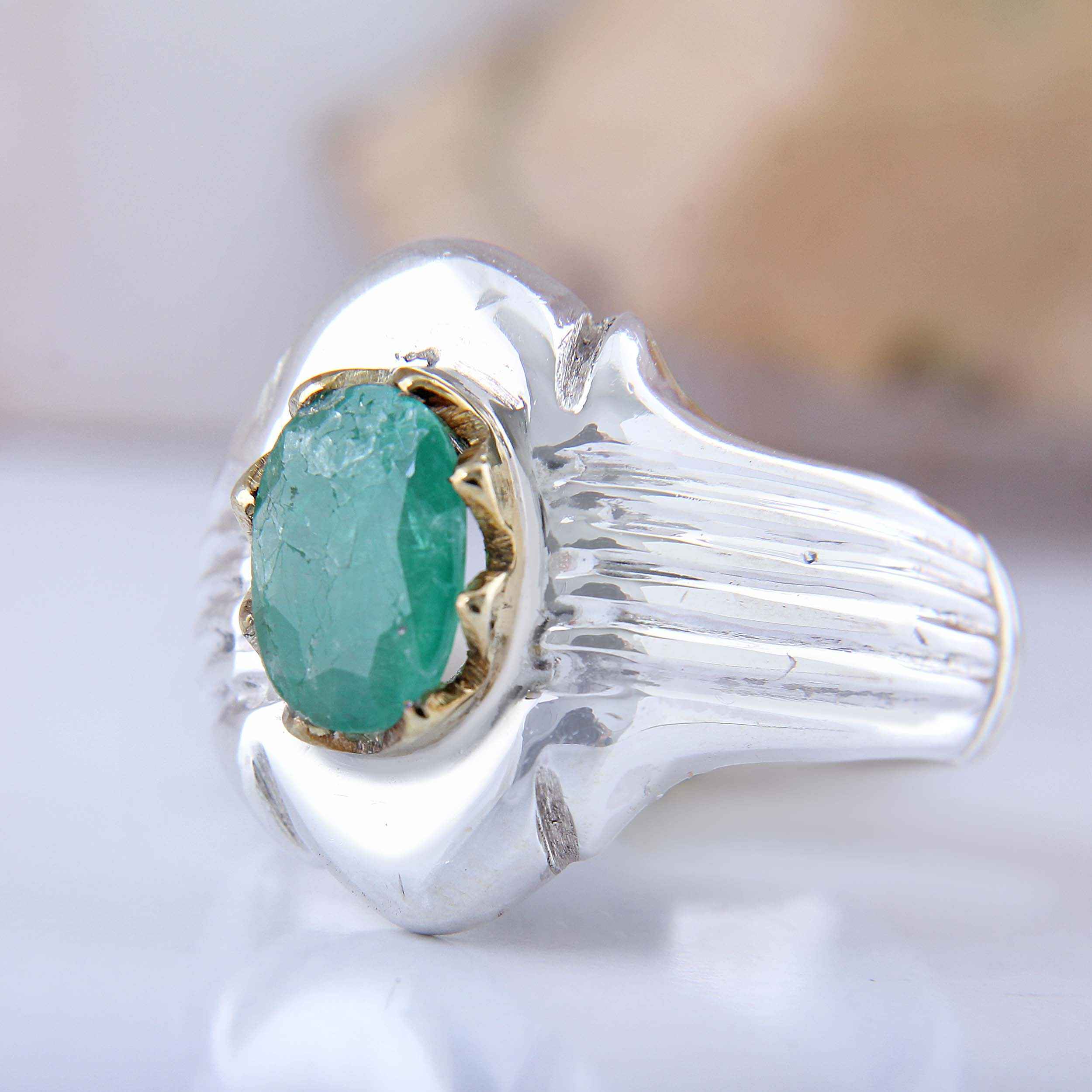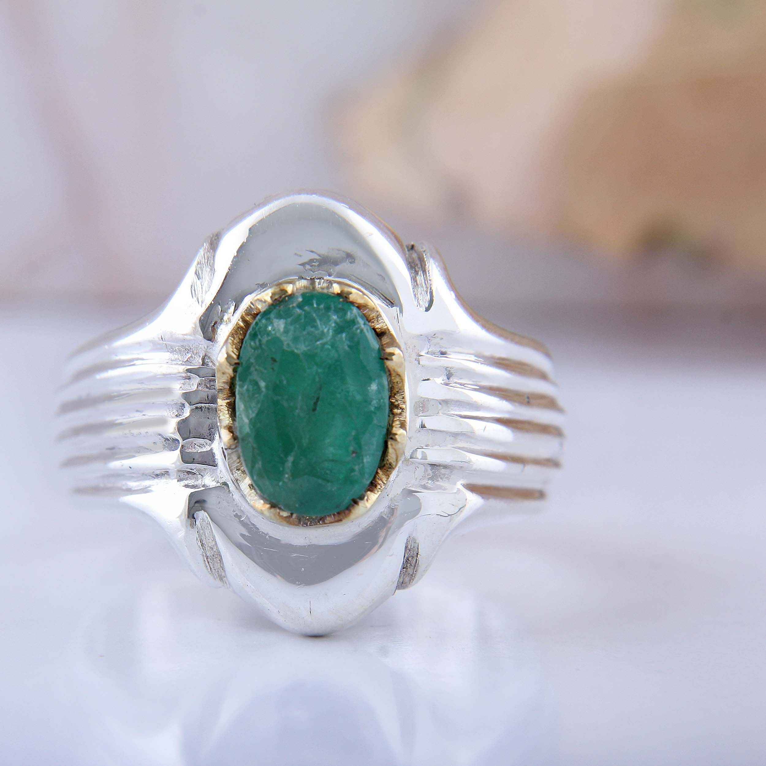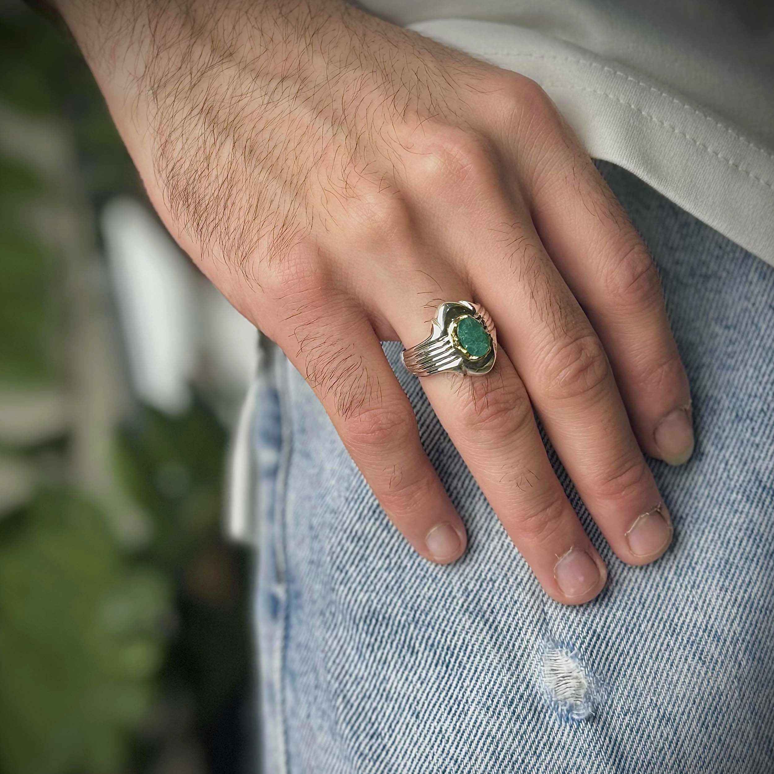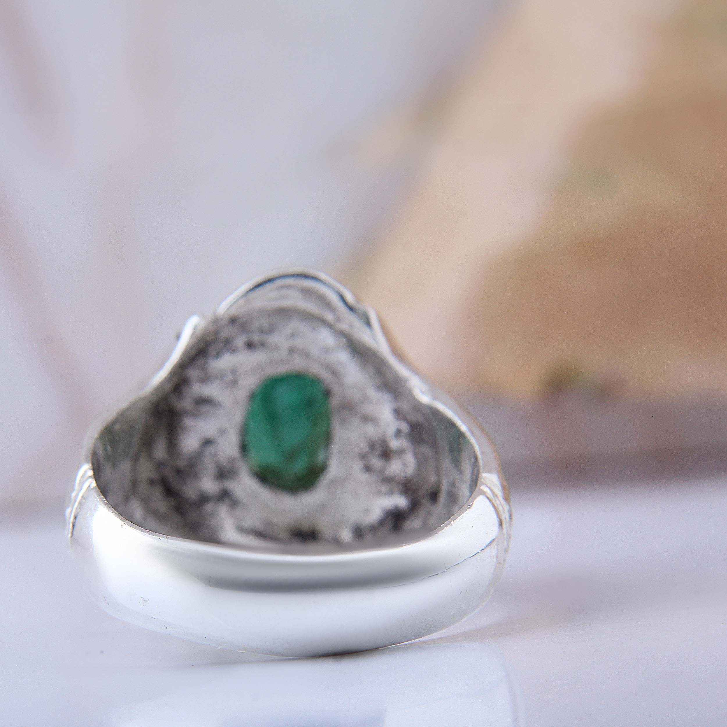 Elevate your jewelry collection with our Green Emerald Silver Ring, a handcrafted masterpiece featuring a stunning Zambian emerald. This exquisite ring showcases the vibrant green hue and brilliance of a premium Zambian emerald, meticulously set in a sleek silver band. Each piece is individually crafted by skilled artisans, ensuring that the intricate details and high-quality materials come together to create a unique and timeless accessory. Perfect for any occasion, this Green Emerald Silver Ring adds a touch of elegance and sophistication to your ensemble. Whether worn as a statement piece or paired with other jewelry, its captivating color and refined design make it a versatile addition to your collection. Embrace the beauty and craftsmanship of this handcrafted ring, and let the enchanting allure of the Zambian emerald enhance your style with a touch of Persian artistry.