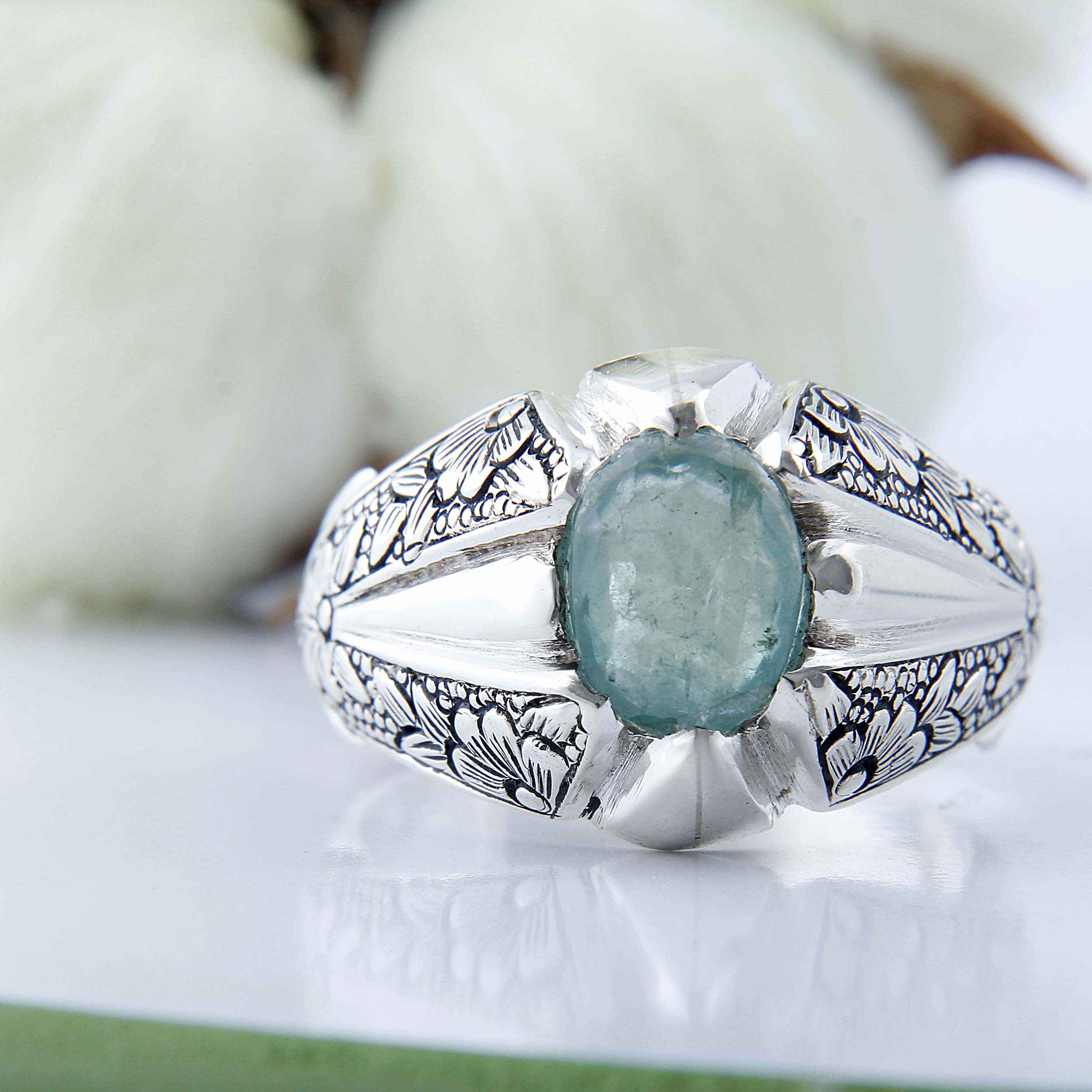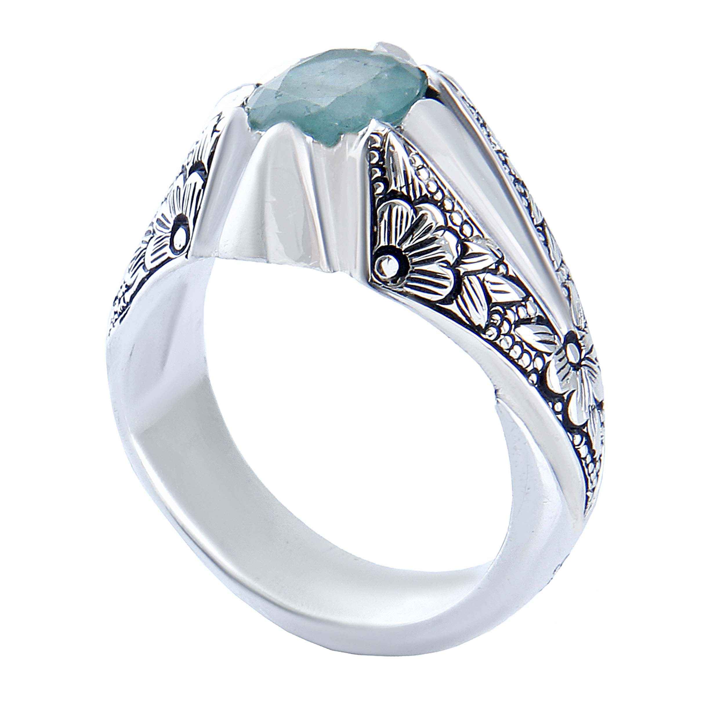 Unveil a touch of sophistication with our meticulously crafted silver ring adorned with a captivating green Emerald stone, painstakingly fashioned by skilled Iranian artisans. Each ring stands as a testament to the intricate artistry and dedication of our craftsmen, capturing the essence of Emerald’s natural allure. With an engraved strip adding an extra layer of refinement, this piece seamlessly merges tradition with contemporary elegance, offering a timeless addition to any jewelry collection. Elevate your ensemble with the understated glamour of our Green Emerald stone silver ring, where Persian craftsmanship meets refined beauty. Whether worn as a symbol of personal style or cherished as a meaningful gift, this handcrafted piece exudes sophistication and allure.