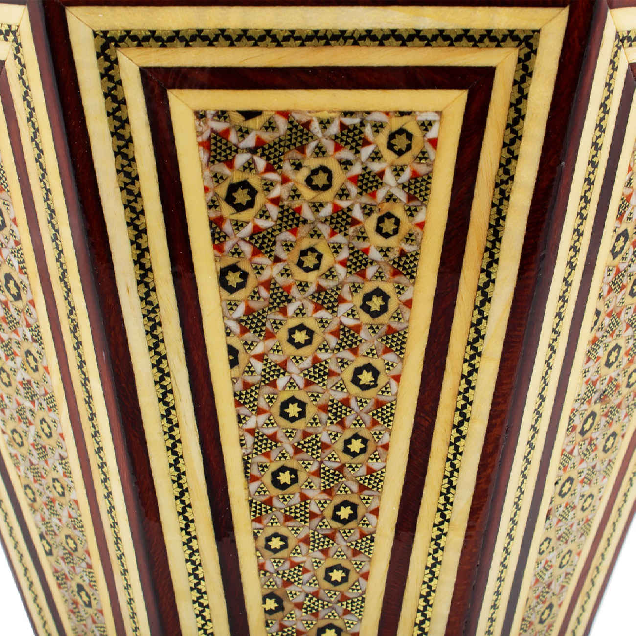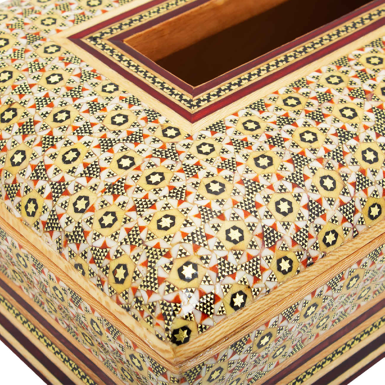 This elegant set includes a waste basket and tissue box, both showcasing the exquisite art of Khatamkari, a traditional Persian craft known for its intricate inlay work. Each piece is meticulously handcrafted, featuring geometric patterns made from fine materials like wood, bone, and brass. The delicate craftsmanship reflects centuries of artistic heritage, creating a striking balance between beauty and functionality. The waste basket and tissue box offer a luxurious touch to any room, from living spaces to offices. Their timeless design complements both modern and classic décor, making them not just practical accessories but also pieces of art that elevate your surroundings. This set celebrates Persian artisanship, offering a blend of tradition and elegance that will captivate any connoisseur of fine decor.