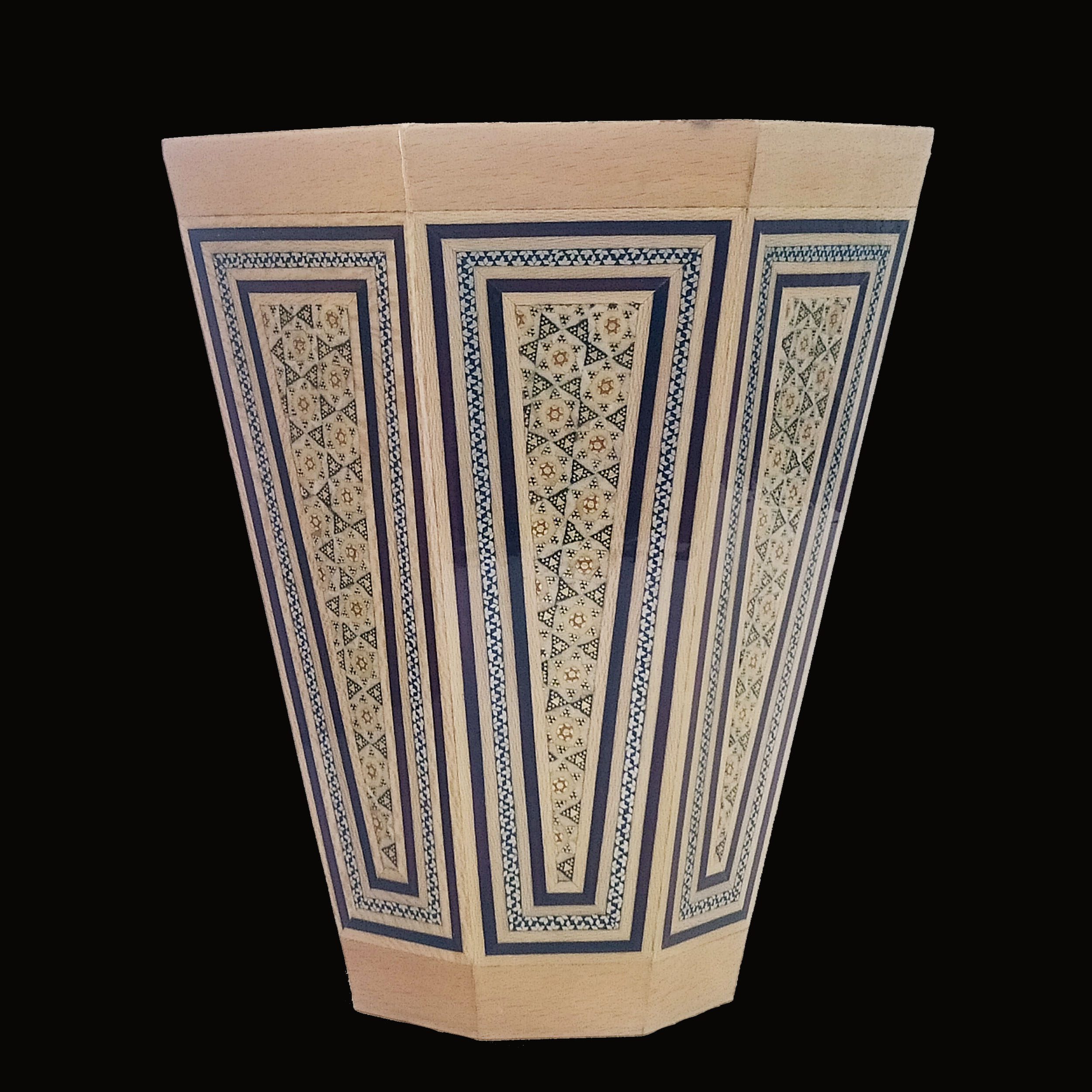 Crafted with precision and steeped in history, these exquisite Persian Khatamkari waste baskets are a true celebration of traditional Iranian artistry. Each basket is intricately adorned with geometric patterns, meticulously inlaid using tiny pieces of wood, bone, and metal. The delicate marquetry work, known as Khatamkari, showcases the skill of artisans who have perfected this craft over generations. deal for those who appreciate cultural treasures, these waste baskets are more than just functional items—they are works of art that reflect the rich heritage of Persian design. The intricate details, often inspired by nature and geometry, invite admiration and add a touch of elegance to any space. Whether placed in a study, office, or living room, these baskets bring a sense of refinement and artistic charm, making them perfect for art lovers and collectors alike.