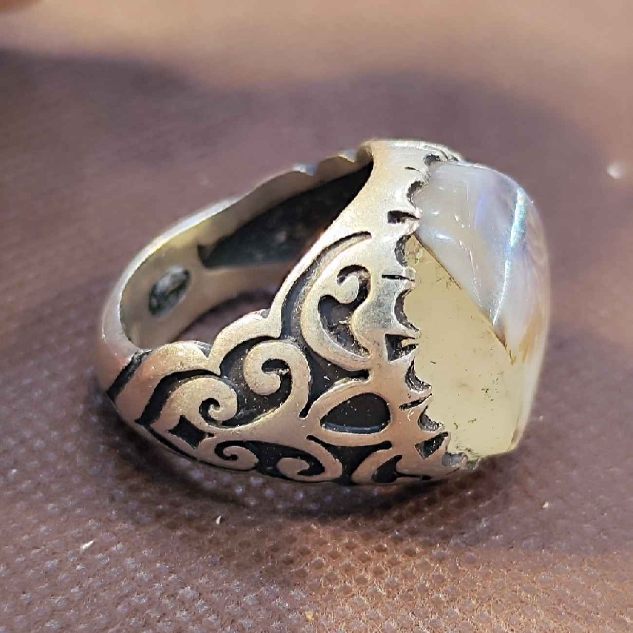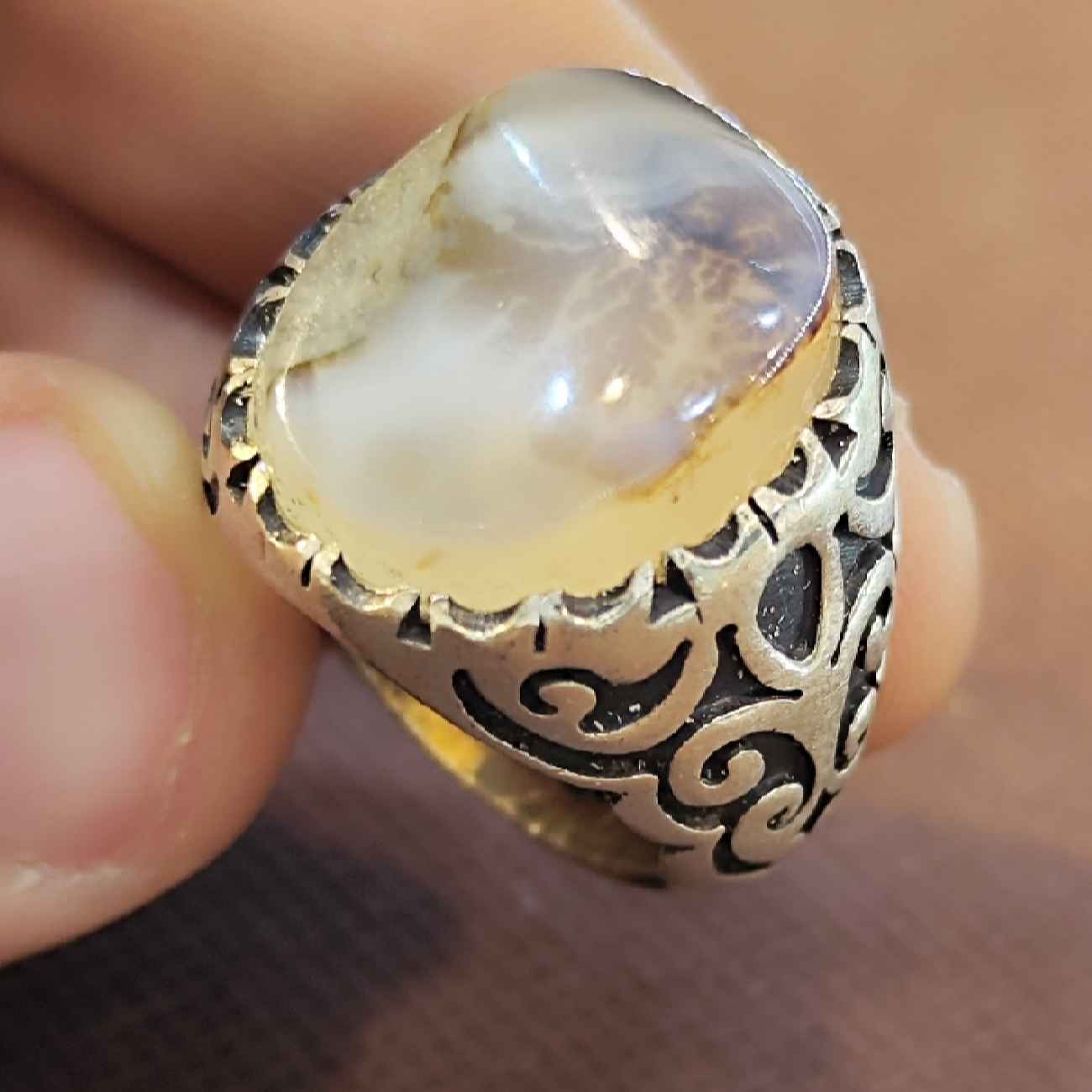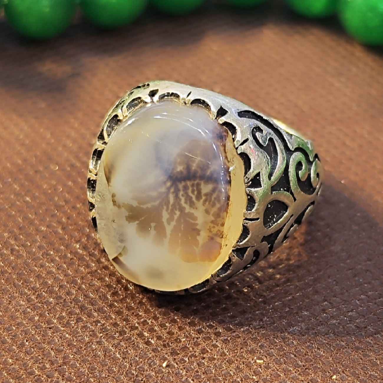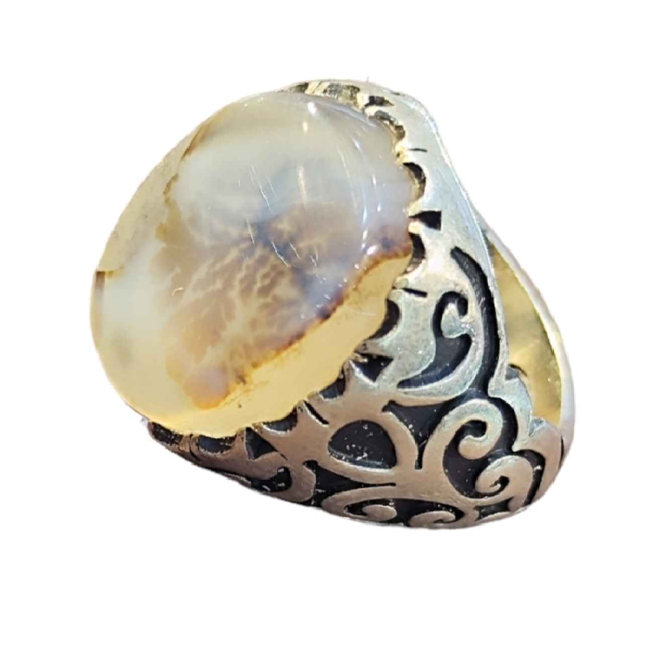 The Persian Men’s Silver Ring featuring an Agate Stone, model Shajar, is a striking piece of jewelry that exudes elegance and tradition. Crafted from high-quality silver, this ring showcases intricate Persian designs that reflect centuries of artistry. The centerpiece, a polished agate stone, is known for its captivating patterns and vibrant colors, adding a unique touch to each ring. The Shajar model is characterized by its robust and masculine design, making it a perfect accessory for any occasion. The combination of silver and agate symbolizes strength and sophistication, appealing to those who appreciate fine craftsmanship. Whether worn casually or for formal events, this ring is sure to make a statement. Ideal as a gift or a personal treasure, the Persian Men’s Silver Ring with Agate Stone is a timeless addition to any jewelry collection. Each piece is crafted with care, ensuring a blend of beauty and durability that lasts for generations.