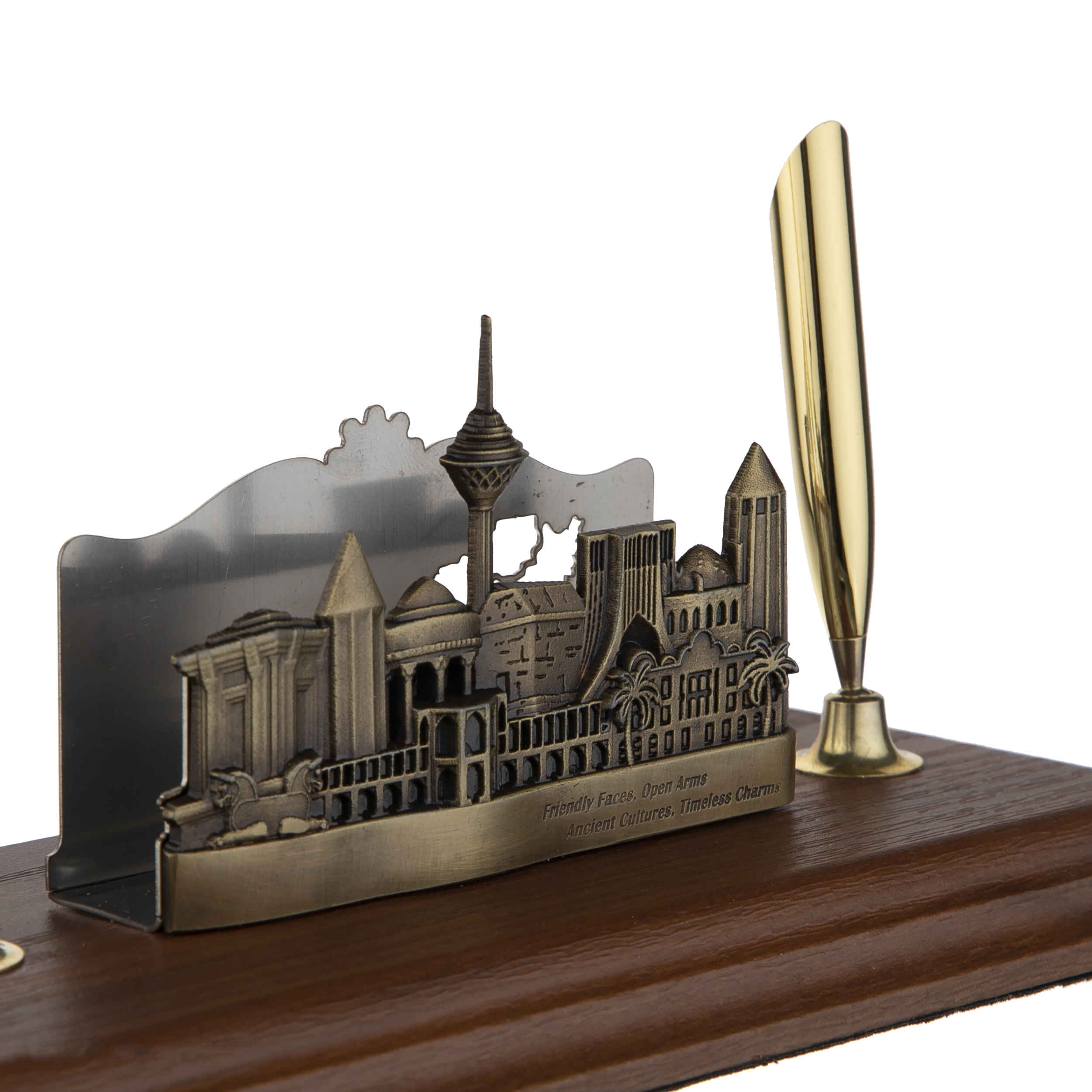 Explore the essence of Iran’s cultural heritage with our exquisite Persian Metal Office Desk Accessories. Crafted with precision and passion, this collection features 11 iconic symbols representing Iran’s rich history, including the Milad Tower, Azadi Tower, Si-o-se-pol Bridge, Eram Garden, Ibn Sina Mausoleum, Saadi’s Mausoleum, Tomb of Cyrus, Gonbad-e Sultanieh, Huma bird, and more. Each piece is meticulously designed to celebrate the beauty and significance of these landmarks, making them cherished treasures for Iranians worldwide. Perfect for commemorating special occasions such as birthdays, national holidays, or professional milestones, our Persian Metal Office Desk Accessories are both thoughtful and meaningful gifts. This Metal Office Desk Accessories organizer and card holder boasts a stunningly detailed map of Iran on the back, while the top features an elegant lotus flower motif. Plus, each piece is equipped with a soft fabric base to prevent slipping. Embrace the cultural richness of Iran and elevate your workspace with our Persian Metal Office Desk Accessories today!