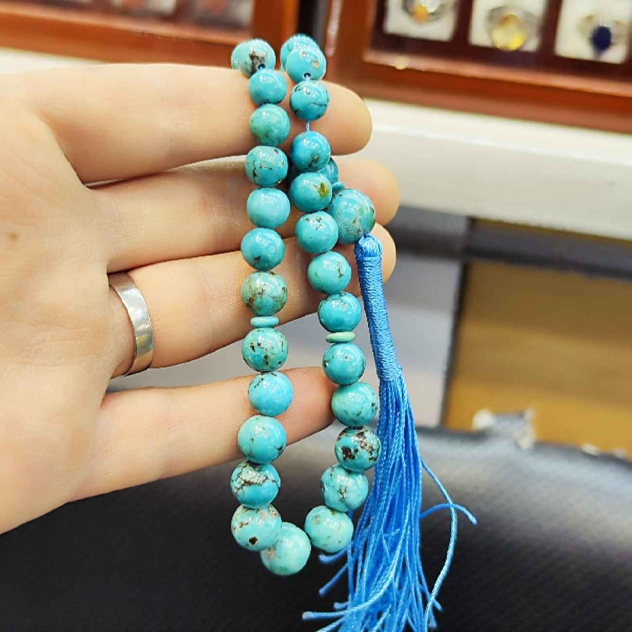 Immerse yourself in the splendor of spiritual devotion with our Persian Rosary, adorned with Neyshabur Turquoise Gemstones. Each bead is a testament to timeless elegance and profound significance, meticulously crafted to perfection. As valuable as they are beautiful, these rosaries elevate prayer to a luxurious experience, ideal for those who seek both opulence and spiritual connection. With each prayer, feel the weight of centuries of tradition and reverence in the palm of your hand. Indulge in the luxury of spiritual refinement with our Persian Rosaries, designed for those who appreciate the exquisite. Whether as a cherished personal treasure or a meaningful gift, these rosaries offer a touch of sophistication to your prayer rituals.
