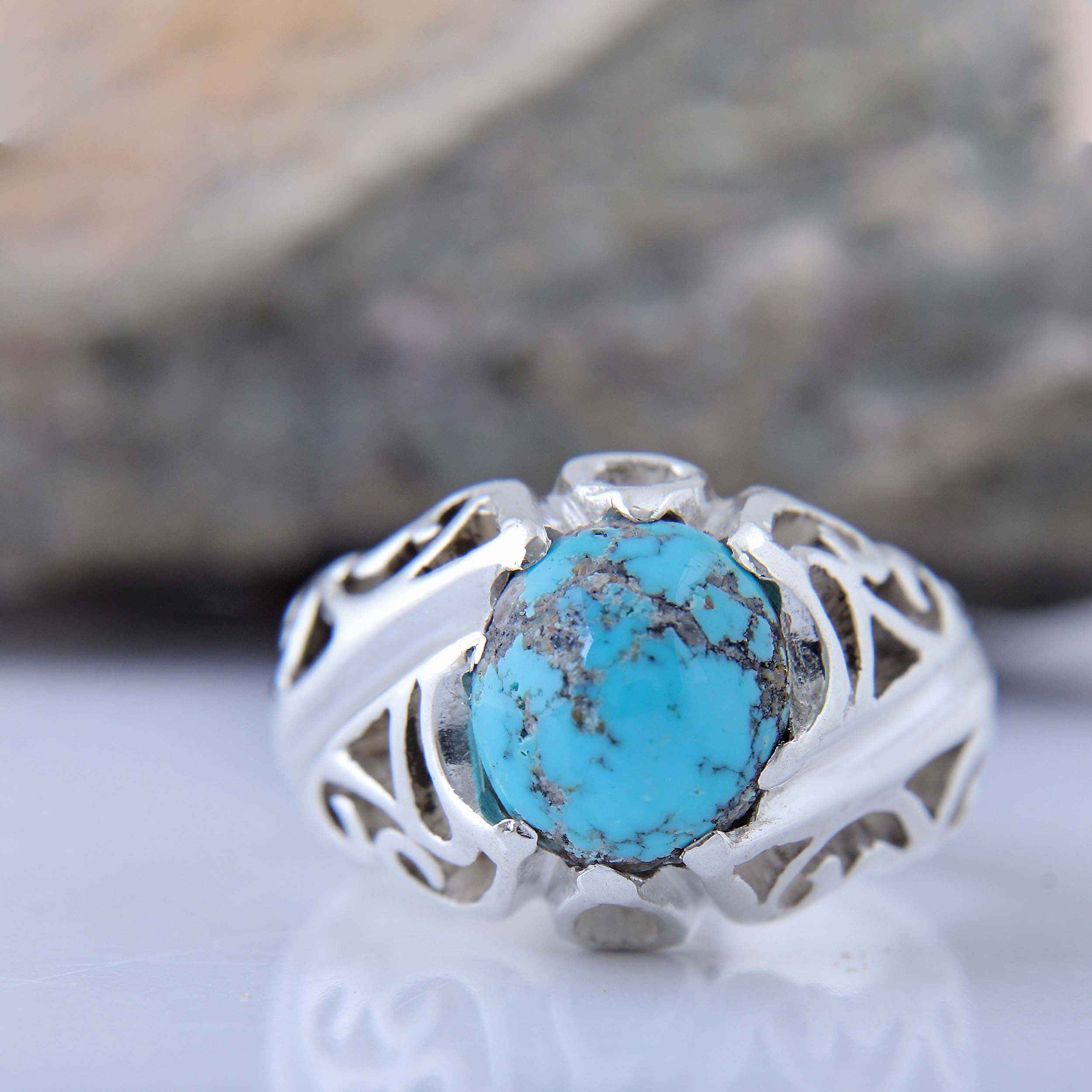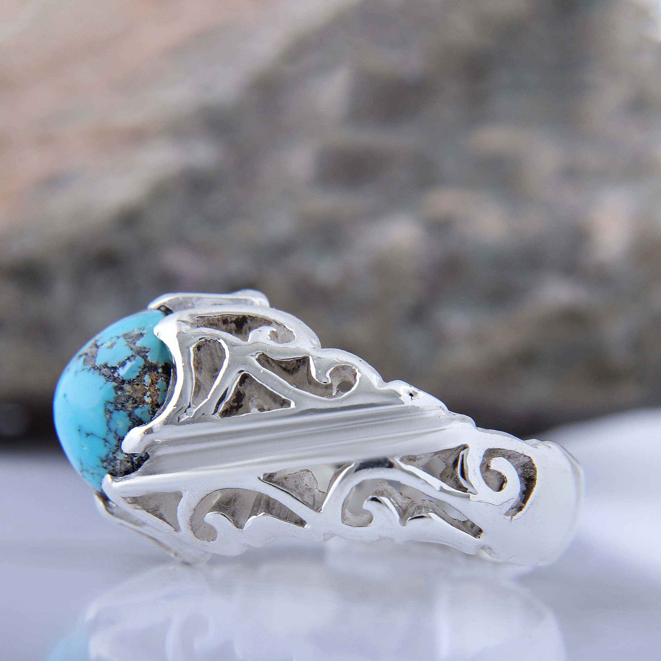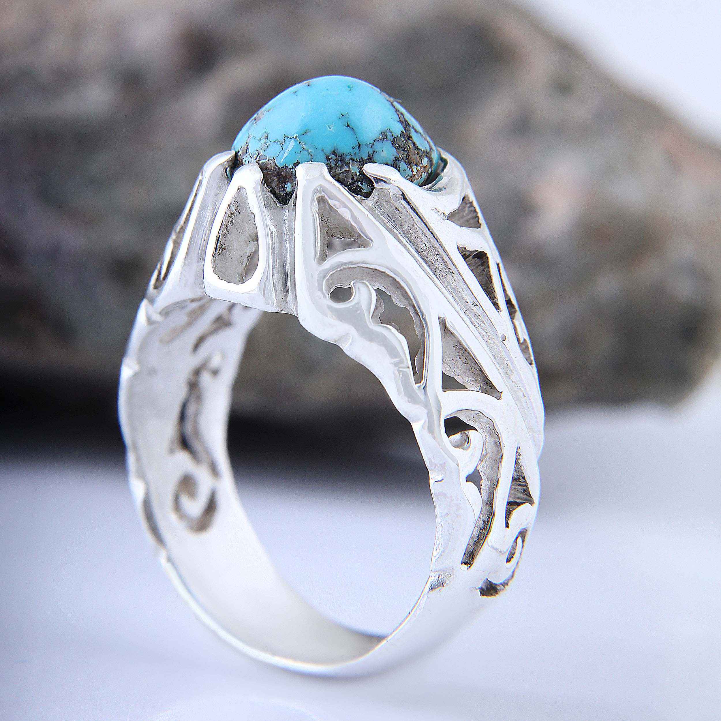 Step into a realm of enchantment with our Persian Neyshabur Turquoise Silver Ring, a true testament to artisanal mastery. Adorned with a radiant Neyshabur Turquoise stone, affectionately known as Firoze, Feroza, or Firoozeh, this ring embodies the opulent heritage of Persia. Meticulously crafted by hand, each detail from the intricately engraved silver band to the graceful Turquoise centerpiece exudes unparalleled artistry. Our artisans infuse dedication and skill into every piece, ensuring uniqueness and exquisite beauty. All of our Neyshabur Turquoise Silver Rings come with a certification, ensuring authenticity and quality. Embrace the allure of Persian culture and the timeless charm of Turquoise with this handcrafted masterpiece. Elevate your style with an elegant touch that transcends fleeting trends, promising enduring sophistication.