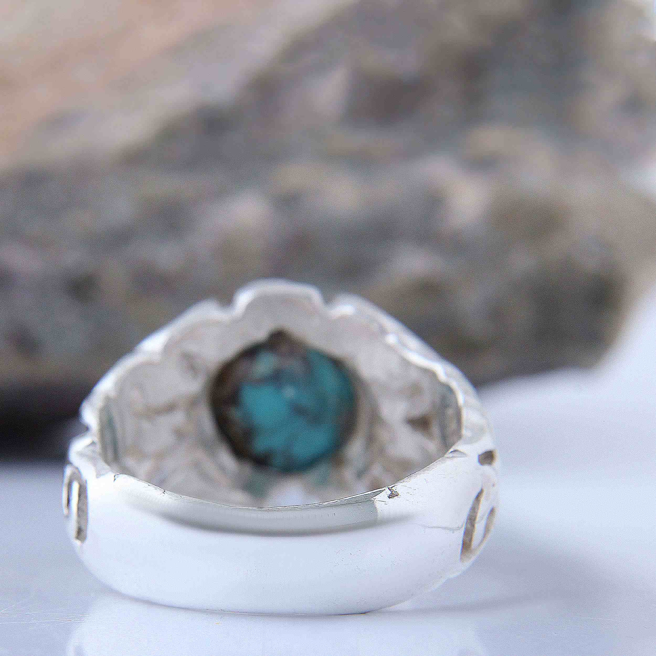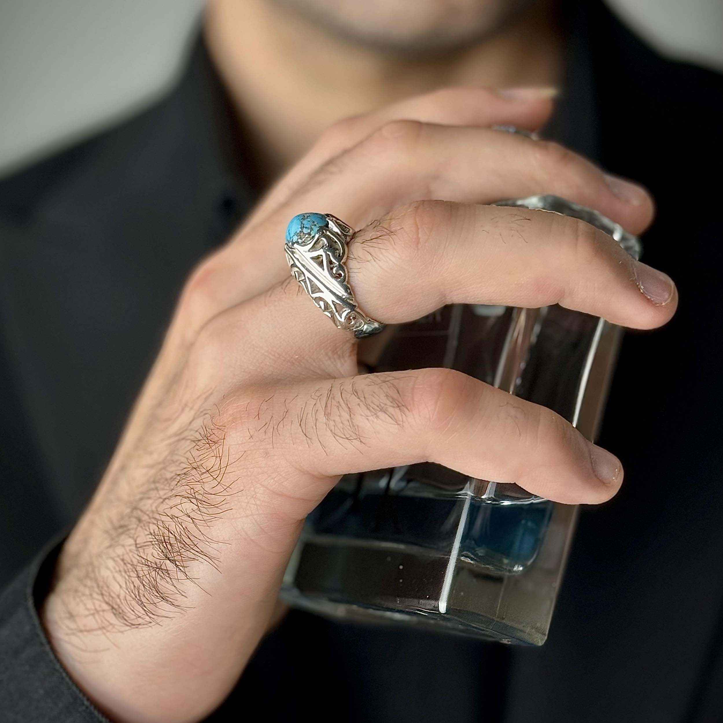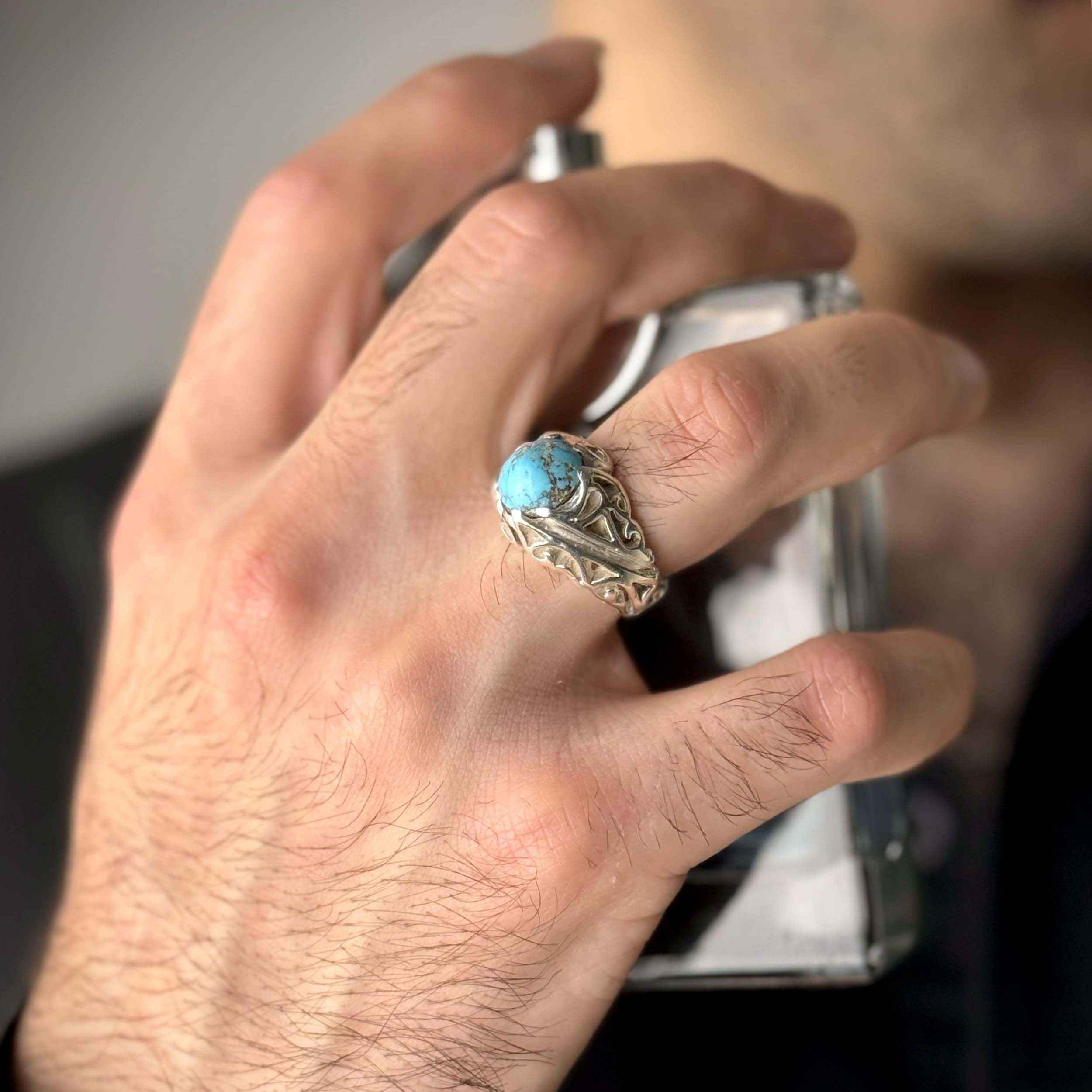 Step into a realm of enchantment with our Persian Neyshabur Turquoise Silver Ring, a true testament to artisanal mastery. Adorned with a radiant Neyshabur Turquoise stone, affectionately known as Firoze, Feroza, or Firoozeh, this ring embodies the opulent heritage of Persia. Meticulously crafted by hand, each detail from the intricately engraved silver band to the graceful Turquoise centerpiece exudes unparalleled artistry. Our artisans infuse dedication and skill into every piece, ensuring uniqueness and exquisite beauty. All of our Neyshabur Turquoise Silver Rings come with a certification, ensuring authenticity and quality. Embrace the allure of Persian culture and the timeless charm of Turquoise with this handcrafted masterpiece. Elevate your style with an elegant touch that transcends fleeting trends, promising enduring sophistication.