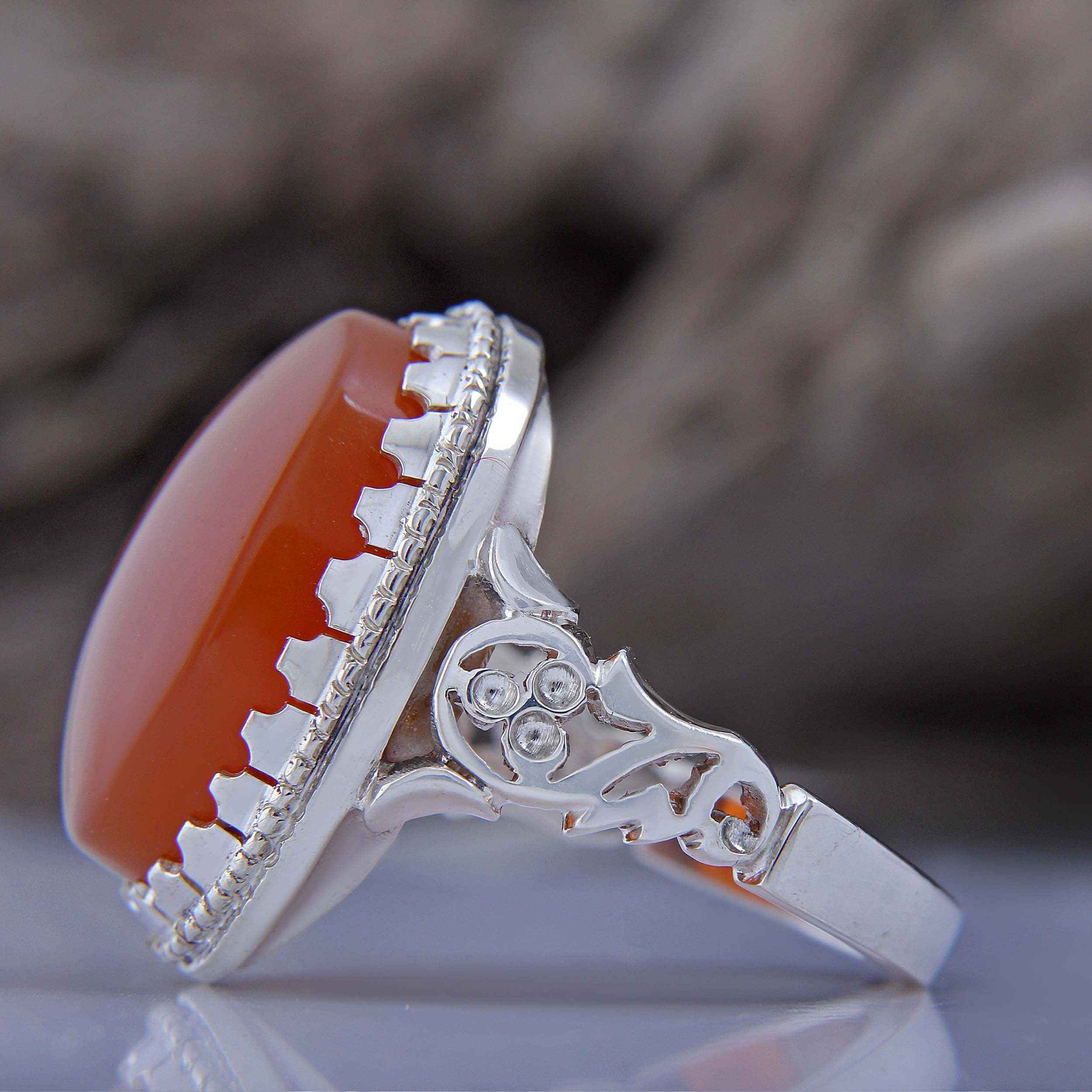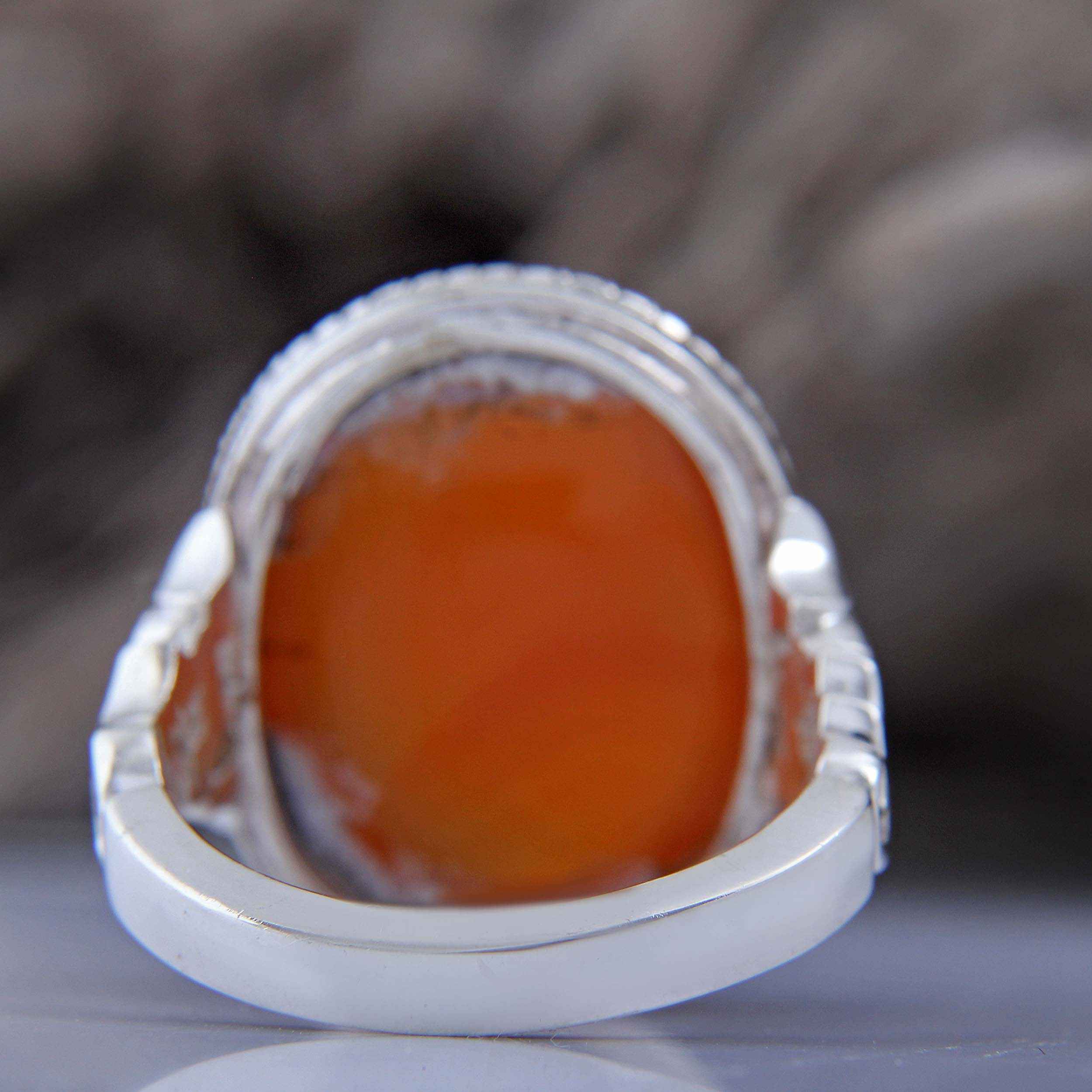 Discover the timeless elegance of our Yemeni Aqeeq Silver Ring, a masterpiece of craftsmanship and cultural heritage. Handcrafted by skilled artisans, this exquisite ring features a stunning Aqeeq stone, known for its deep, rich hues and captivating natural patterns. Set in high-quality sterling silver, the ring showcases intricate detailing that reflects the rich tradition and artistry of Yemeni jewelry making. Perfect for both everyday wear and special occasions, the Yemeni Aqeeq Silver Ring is more than just an accessory – it’s a statement of sophistication and authenticity. The Aqeeq stone is revered not only for its beauty but also for its purported protective and healing properties, making it a meaningful addition to your jewelry collection. Embrace the allure of this handcrafted ring and let its elegance elevate your style with a touch of heritage and grace.