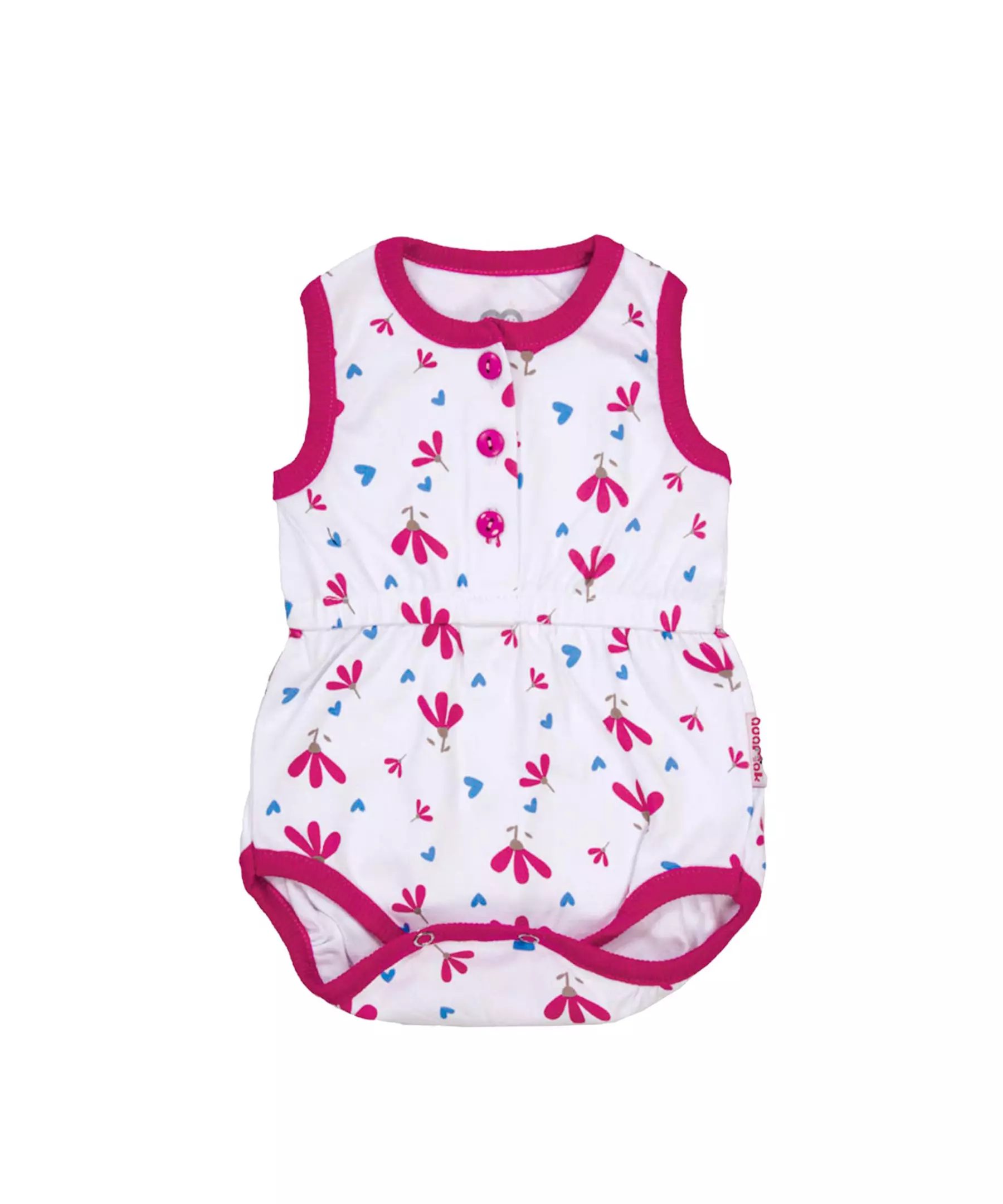Wrap your little princess in pure charm with our Pink Sleeveless Floral Bodysuit for Baby Girls! Crafted from soft cotton fabric, it’s a gentle embrace for her delicate skin, ensuring comfort all day long. The sleeveless design is perfect for warmer days, allowing freedom of movement and easy pairing with skirts, shorts, or pants for a variety of adorable looks. Adorned with a delicate floral design, this bodysuit adds a touch of sweetness to your baby girl’s ensemble, making her the center of attention wherever she goes. Whether it’s a playdate or a family outing, our Pink Sleeveless Floral Bodysuit is the perfect blend of comfort and style for your precious little girl.