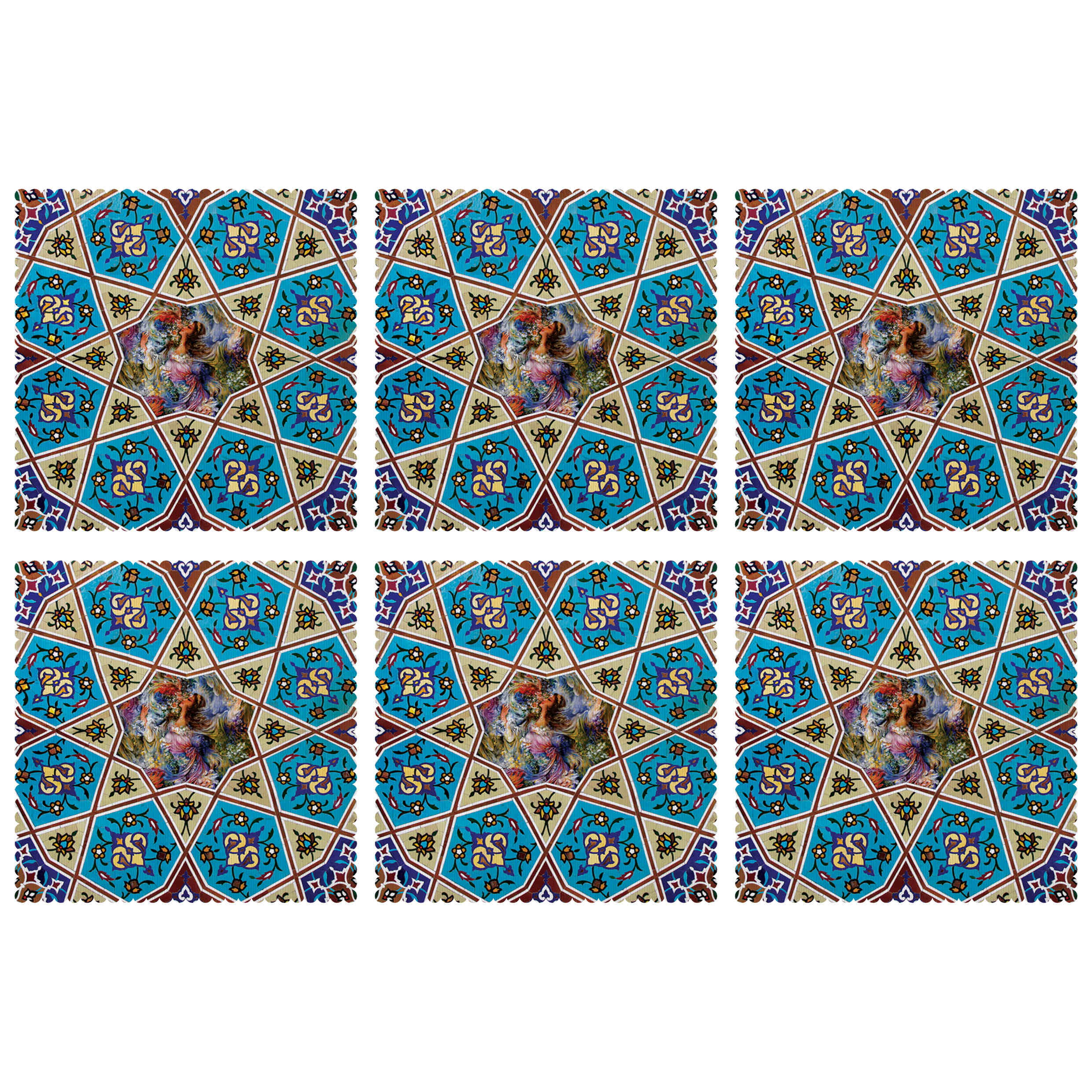 This exquisite set of six placemats showcases the beauty of Iranian artistry, blending tradition with contemporary style. Each piece is adorned with intricate patterns inspired by Persian heritage, adding elegance to any dining setting. Crafted from high-quality materials, these placemats are both durable and stylish. The vibrant yet sophisticated designs make them perfect for special occasions or daily use. Easy to clean and maintain, they protect your table while enhancing its aesthetic appeal. The non-slip surface ensures stability, keeping dishes securely in place. Lightweight and versatile, they complement a variety of table settings. Ideal for gifting, these placemats bring cultural charm to any home. Elevate your dining experience with a touch of Persian craftsmanship. A perfect blend of function and artistic beauty.