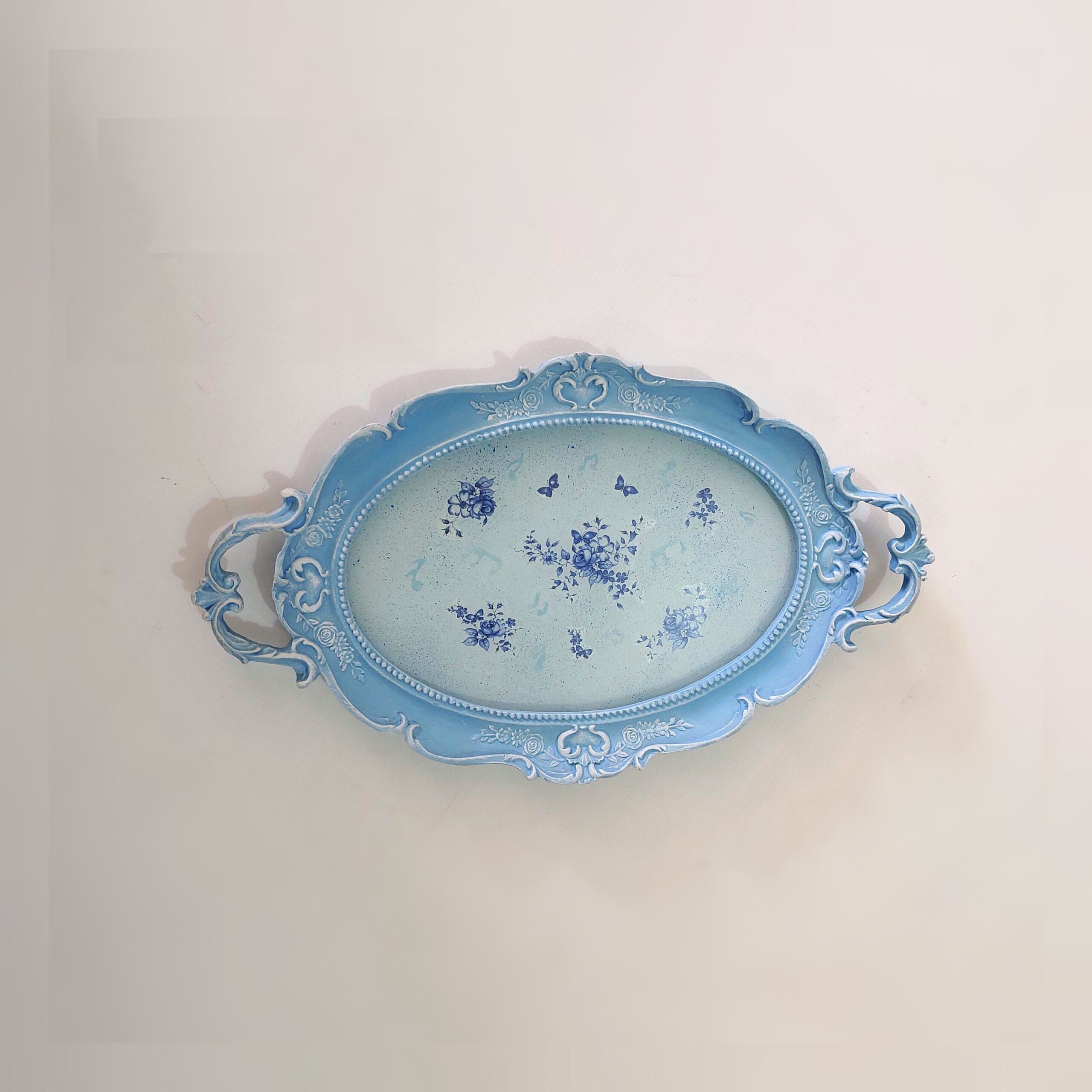 Price and Buy Polyresin Tray – Butterfly & Floral Pattern Ornate Blue Fram
