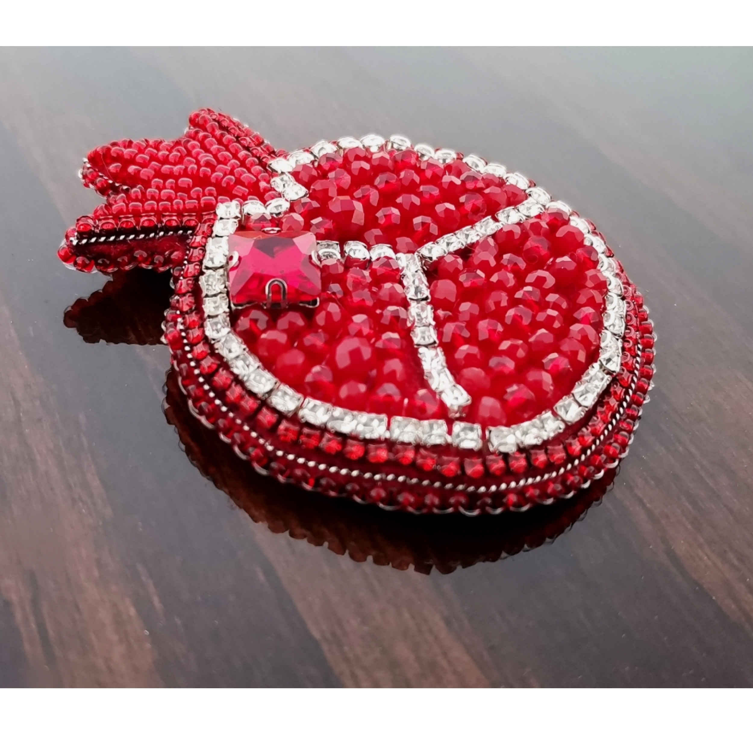 Enhance your style with this exquisite pomegranate brooch pin, a symbol of prosperity and beauty. Crafted with precision, its intricate design captures the rich details of a real pomegranate, adding a unique touch to any outfit. Whether pinned on jackets, scarves, dresses, or bags, this versatile accessory complements both casual and formal wear. Made from high-quality materials, it ensures durability and lasting shine while remaining lightweight and comfortable to wear. A timeless jewelry piece, it makes a perfect gift for loved ones who appreciate meaningful and stylish accessories. Blending tradition with modern elegance, this pomegranate brooch pin is a charming addition to any collection, allowing you to express your individuality with sophistication.