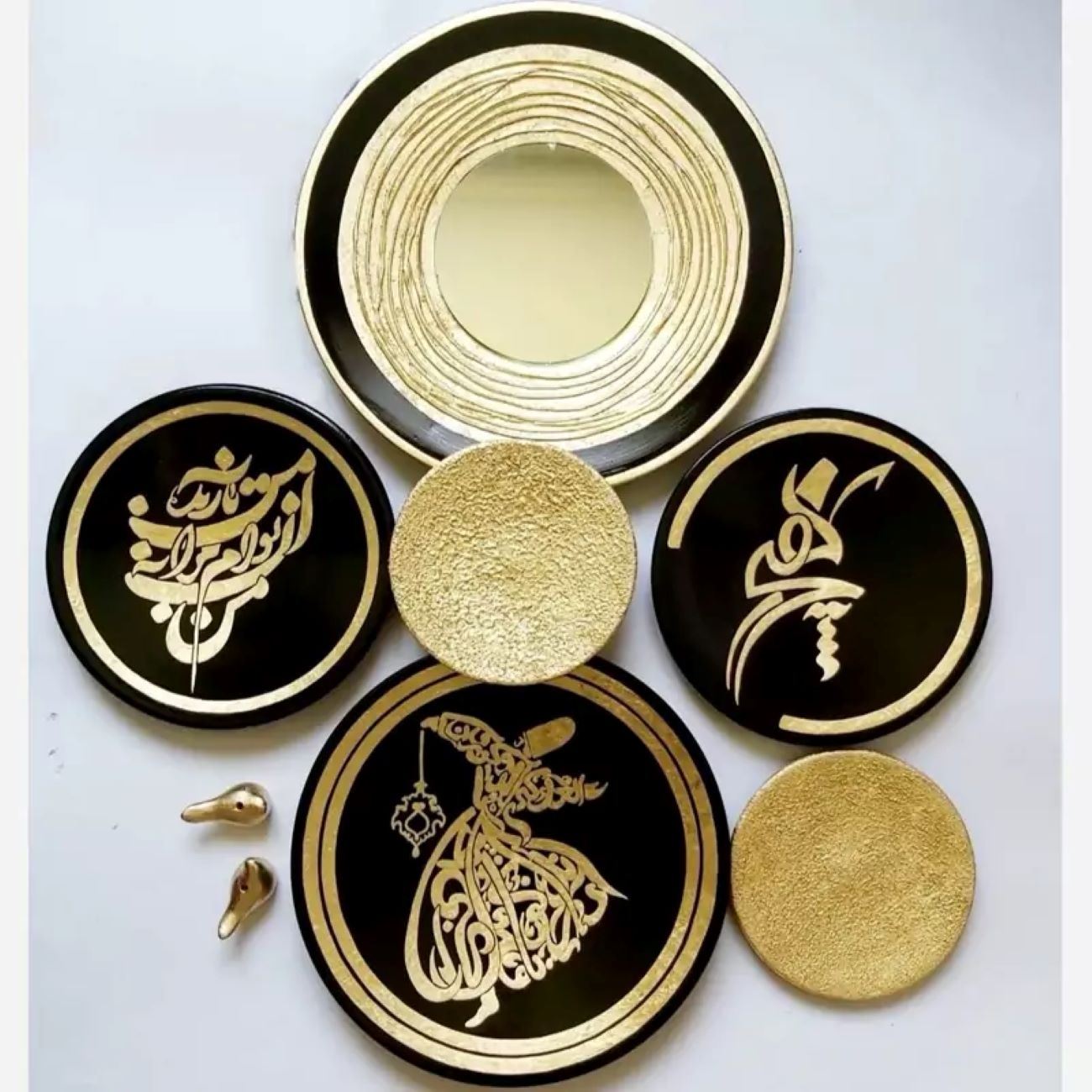 Price and Buy Pottery Wall Plates with Embossed Mirror, Hich and Sufi Dance Design — Set of 6