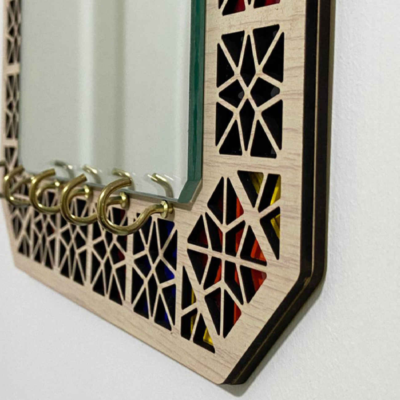 Crafted from natural wood with a timeworn finish, this piece brings a warm, rustic charm to any entryway. The design reflects traditional craftsmanship, offering both beauty and practicality in a compact form that fits effortlessly on your wall.Equipped with sturdy hooks, it helps keep your keys, small bags, or daily essentials neatly organized and easy to find. The integrated mirror adds a convenient touch, perfect for a quick check before heading out the door. Ideal for farmhouse, vintage, or boho-inspired interiors, this wall organizer combines functional storage with handcrafted appeal. Its simple elegance and timeless style make it a standout accent for any home.