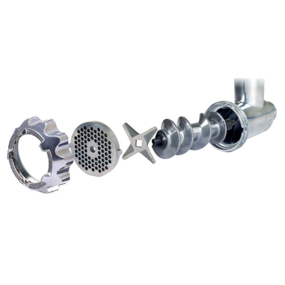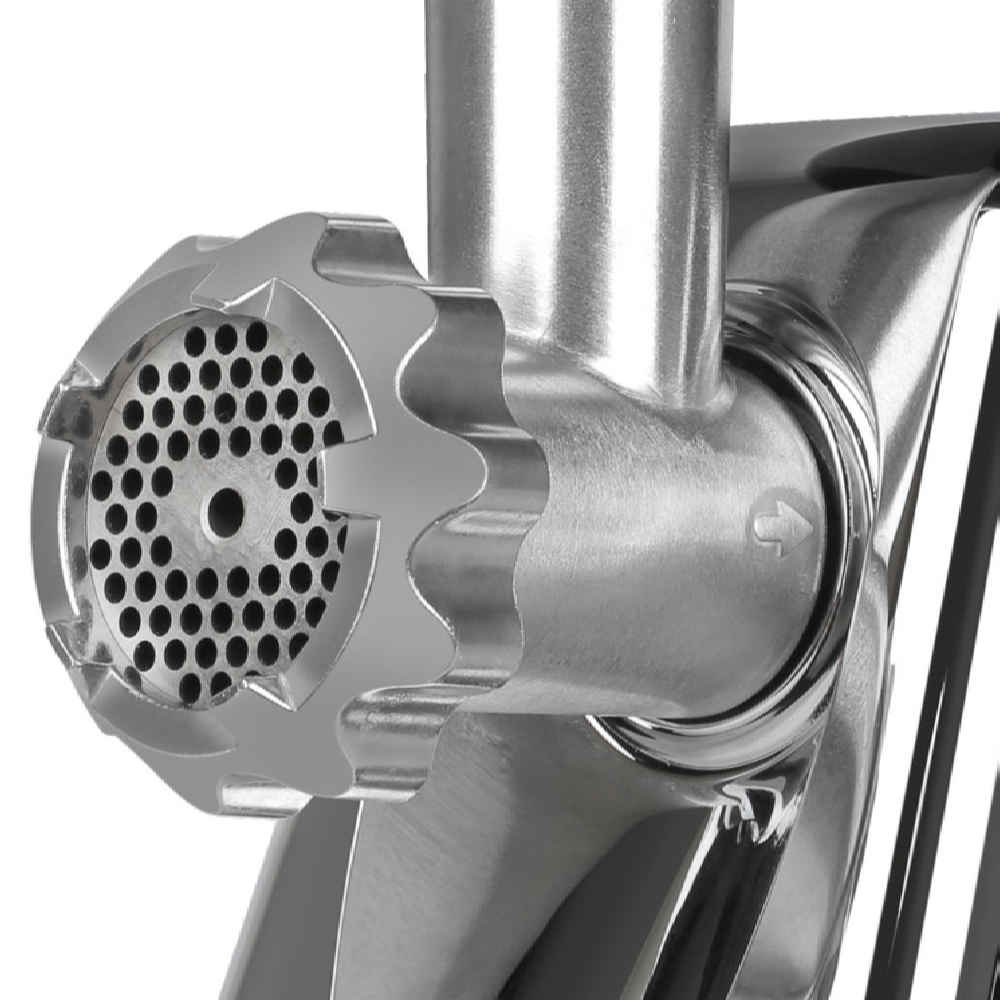 - Features: It has specific windows for meat and vegetables, including attachments for sausages and kebabs, a motor reverse switch, a cord storage compartment, and anti-rust stainless steel blades.