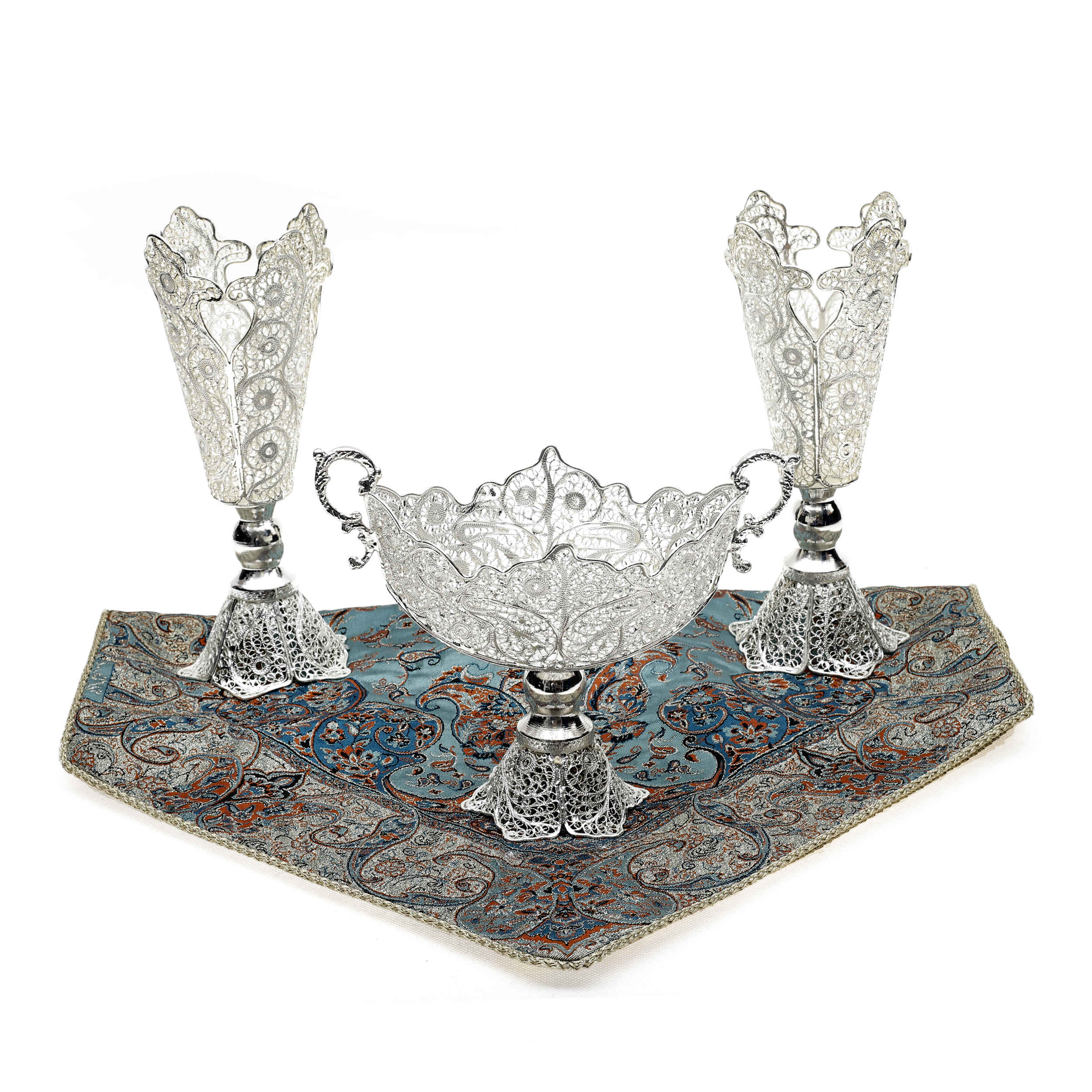 Price and Buy Set of 3 Decorative Persian Filigree Silver Coated Vases & Bowl Fakher