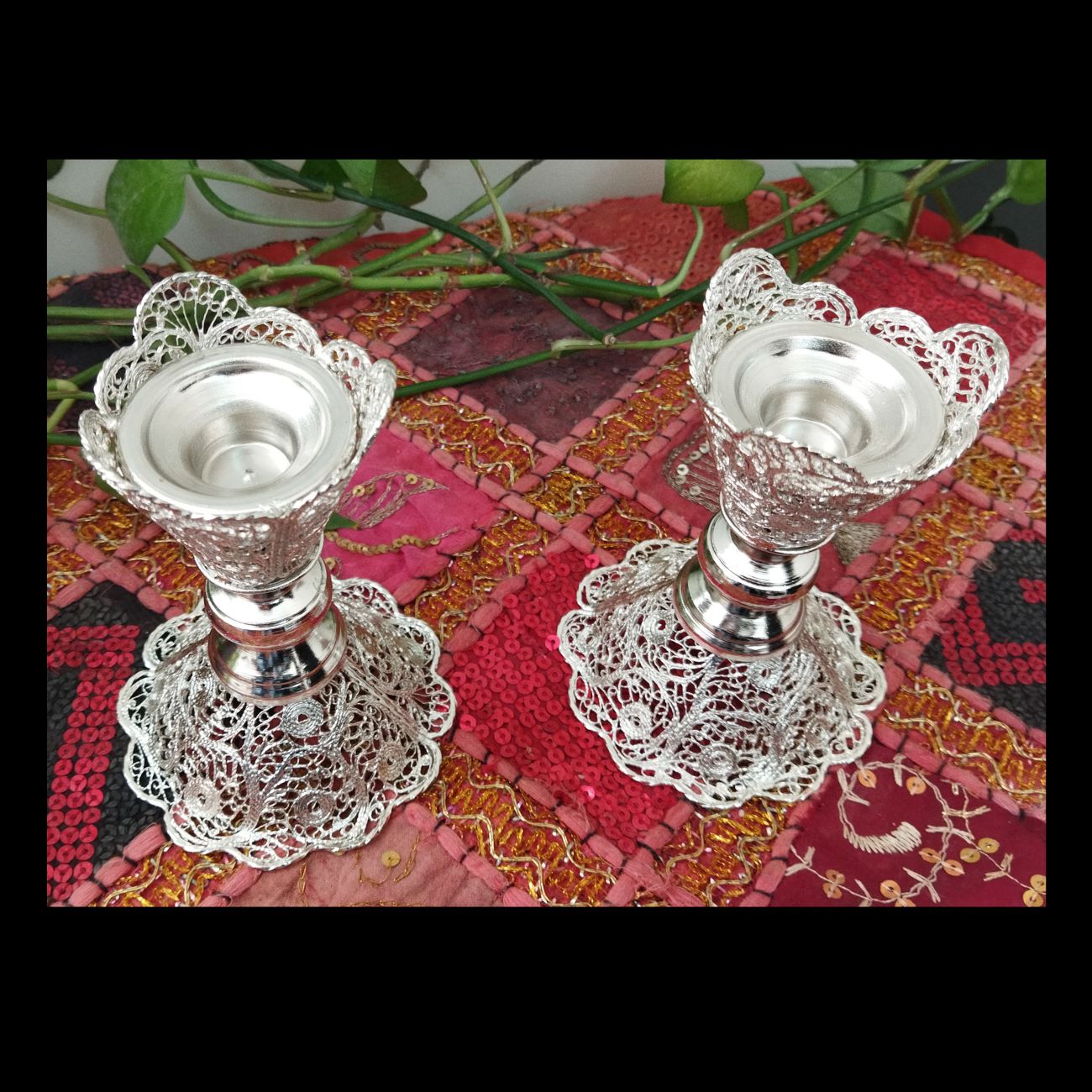 Price and Buy Set of Filigree Candlestick Made of Copper & Silver Coated