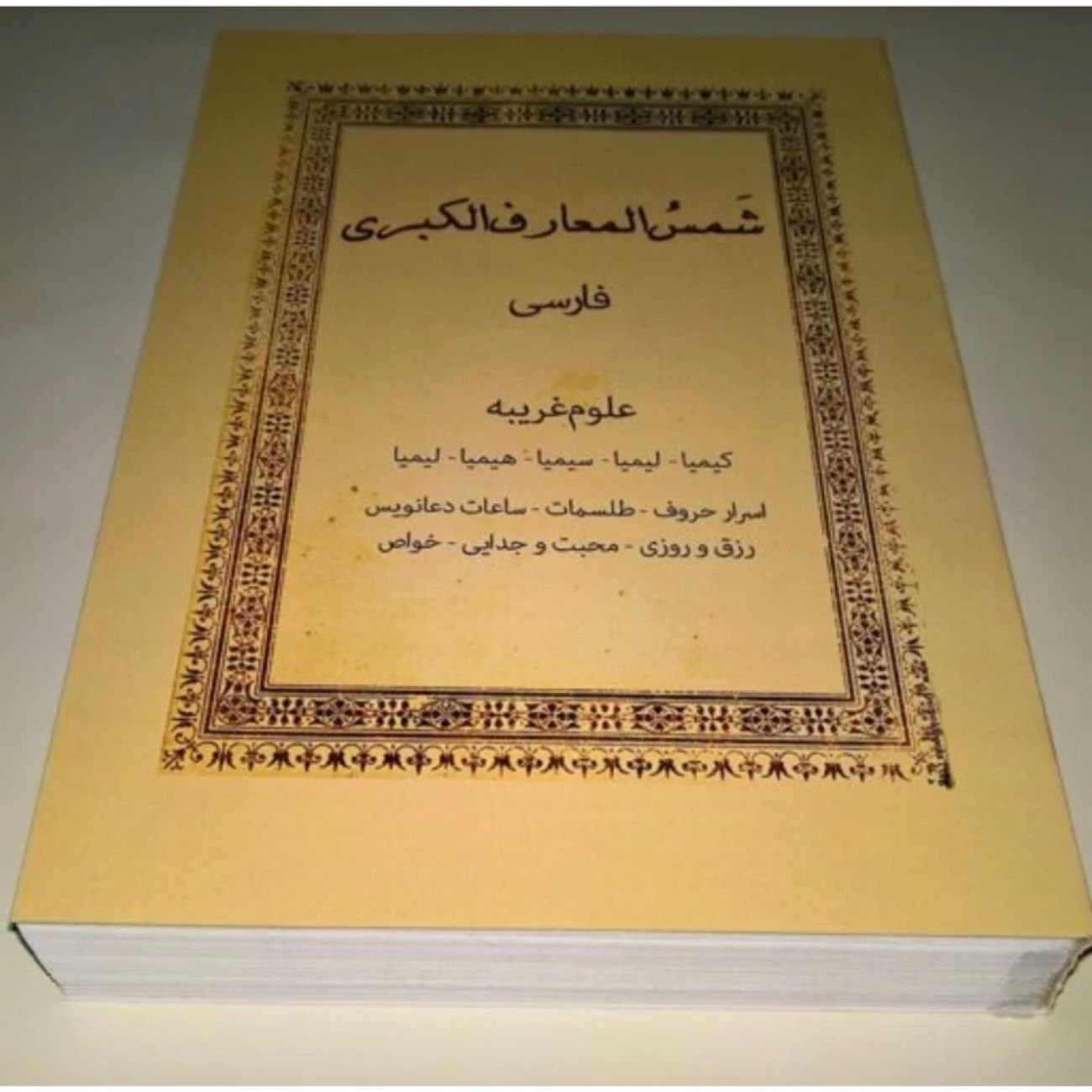 Shams al-Ma’arif al-Kubra (The Great Sun of Knowledge) is one of the most famous and mysterious books of Islamic mysticism, occult sciences, and esoteric knowledge. This Persian edition includes volumes 1 and 2 of the classic work attributed to Ahmad ibn Ali al-Buni. For centuries, it has intrigued readers with its detailed texts on talismans, divine names, spiritual invocations, numerology, astrology, and hidden energies. Filled with magical charts, symbols, and coded wisdom, the book is a unique window into ancient metaphysical traditions. Highly valued by scholars, collectors, and those interested in the occult, this edition offers deep insight into spiritual practices beyond the ordinary. Caution is advised, as the content requires background knowledge in Islamic mysticism and esoteric interpretation.