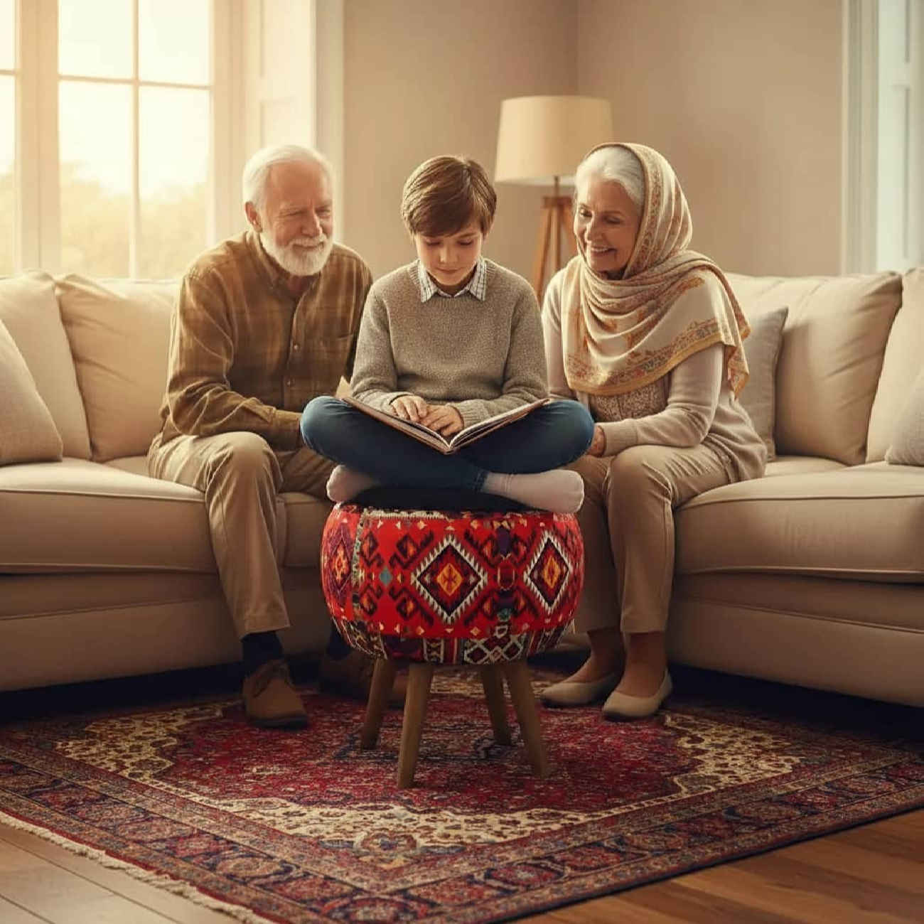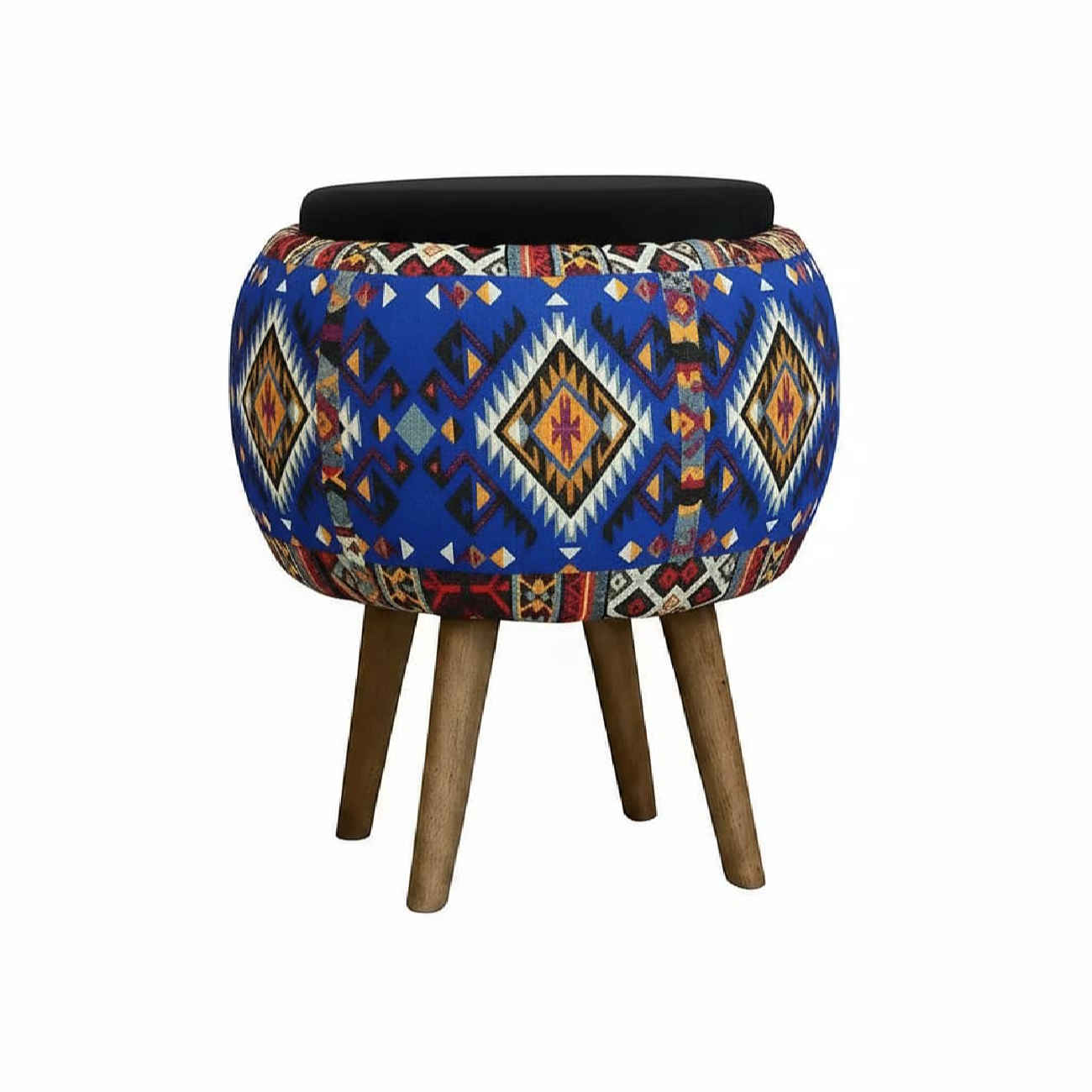 This compact Persian-style ottoman combines traditional Iranian patterns with practical functionality, adding a splash of color and cultural charm to any space. Its vibrant fabric and intricate design make it a standout decorative piece for your home, café, or office.Beyond its aesthetic appeal, this ottoman is highly versatile. It can serve as an extra seat, a small side table for tea or magazines, and a stylish accent that enhances the overall décor. The sturdy wooden legs provide durability and stability for everyday use.Measuring 32x32x40 cm and weighing 1.5 kg, this small yet versatile Persian ottoman is perfect for those seeking a blend of artistry and practicality. It is not just a functional piece but also a warm, inviting element that adds elegance and comfort to any space.
