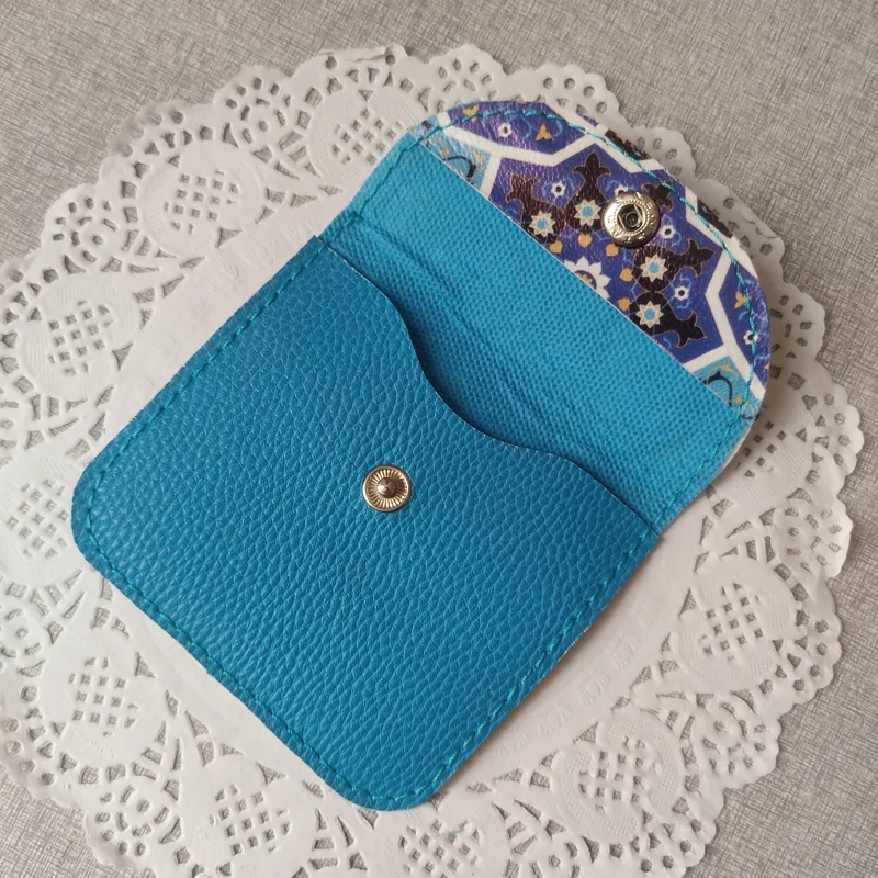 Discover the perfect blend of elegance and tradition with our Snap Button Leather Card Wallet – Persian Turquoise Tile Design. Inspired by the intricate beauty of Persian tile patterns, this wallet showcases a unique cultural artistry that has captivated the world for centuries. Each wallet is meticulously crafted from premium leather, with every stitch thoughtfully placed by skilled artisans, ensuring both durability and sophistication. The snap button closure adds practicality, keeping your cards and cash secure while complementing the wallet’s refined aesthetic. Ideal for everyday use or as a distinguished gift, this wallet is a tribute to timeless craftsmanship and the enduring allure of Persian design. Carry not just a wallet, but a piece of art with you wherever you go.