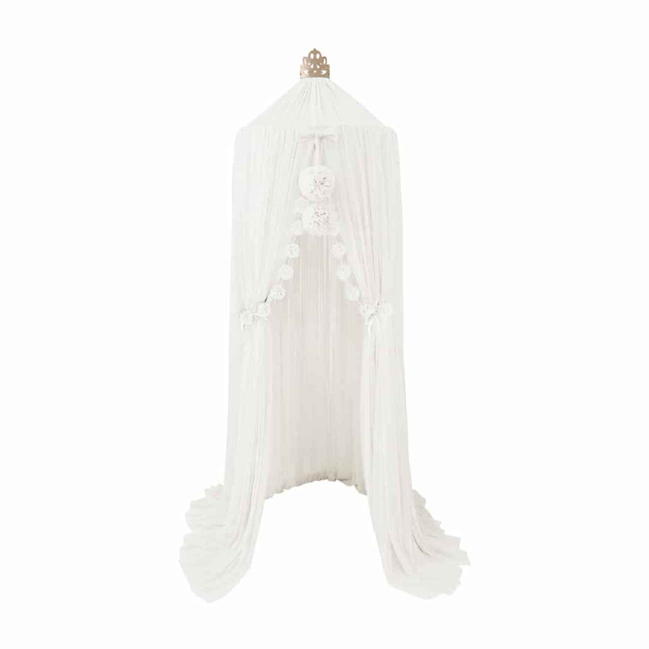 Transform your bedroom into a dreamy and stylish space with this luxurious canopy set made of high-quality sheer fabric. Measuring a total length of 12 meters, the set includes a soft and flowing net, two large pom-poms, two garlands of smaller pom-poms, and a decorative crown piece. The delicate sheer material drapes beautifully, adding a light and graceful touch to any room. This elegant bed canopy instantly elevates the atmosphere of your home. Whether hung over a bed, sofa, chair, or even a reading corner, it creates a cozy and enchanting space for relaxation, study, or play. Its soft and flowing design enhances both comfort and style, making it a perfect addition to your interior décor. Versatile in use, this canopy is suitable for double beds, single beds, as well as children’s and teenagers’ rooms. It’s also an excellent choice for nurseries and baby spaces, offering both a decorative and functional accent. With its charming details and dreamy design, this canopy turns any room into a special retreat.