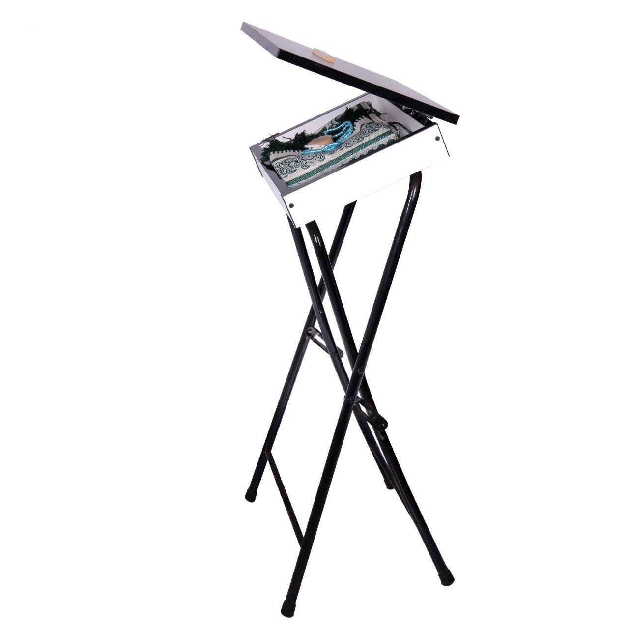 Discover tranquility in your prayer routine with our versatile Prayer Table, meticulously designed for the Muslim community. This table is both stackable and foldable, ensuring a seamless integration into your living space while preserving the sanctity of your prayer area. After your prayers, easily fold the table, offering a practical solution for reclaiming your space. Crafted with durability in mind, the table features sturdy metal profiles, combining a stylish aesthetic with strength and longevity. What sets it apart is its thoughtful design, including a dedicated space for placing Turbah, rugs, and other essentials. This extra feature enhances the table’s functionality, providing Muslims with a convenient and organized prayer space within the comfort of their homes. Elevate your spiritual journey with our Prayer Table, where tradition meets modern convenience, and practicality harmonizes with grace.