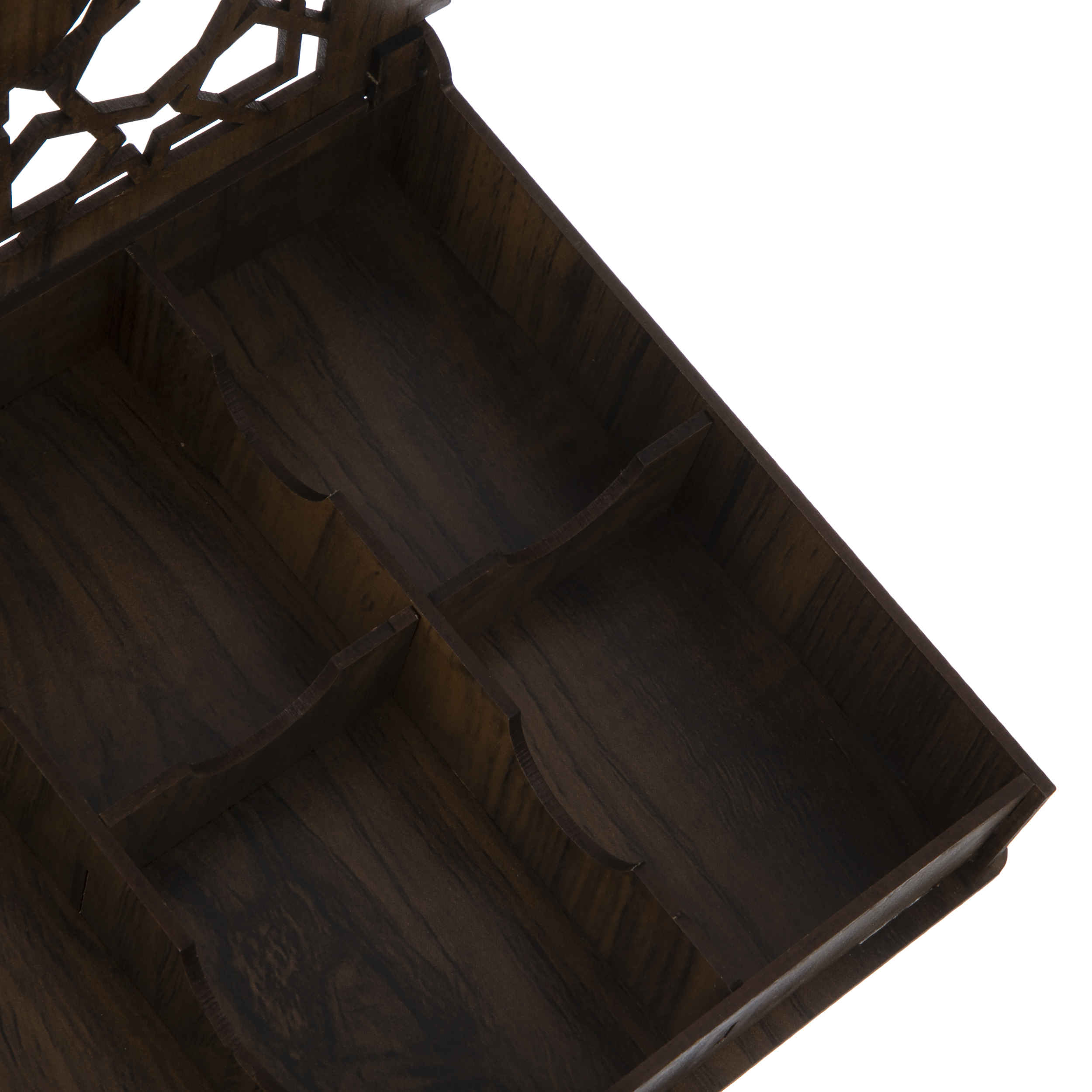 Elevate your tea-drinking ritual with our exquisite Wooden Tea Box, adorned with intricate Persian designs. This elegant tea box is crafted from premium quality wood, ensuring durability and a timeless aesthetic. The Tea Box features multiple compartments, allowing you to neatly store and categorize your favorite tea bags, keeping them fresh and accessible.The Persian design elements are meticulously carved, showcasing traditional artistry that adds a touch of sophistication to any setting. The Wooden Tea Box Organizer also makes for a thoughtful and stylish gift, perfect for birthdays, anniversaries, housewarmings, or any special event. Experience the perfect blend of practicality and artistry with our Wooden Tea Box Organizer, and make every tea time a moment of elegance and serenity.