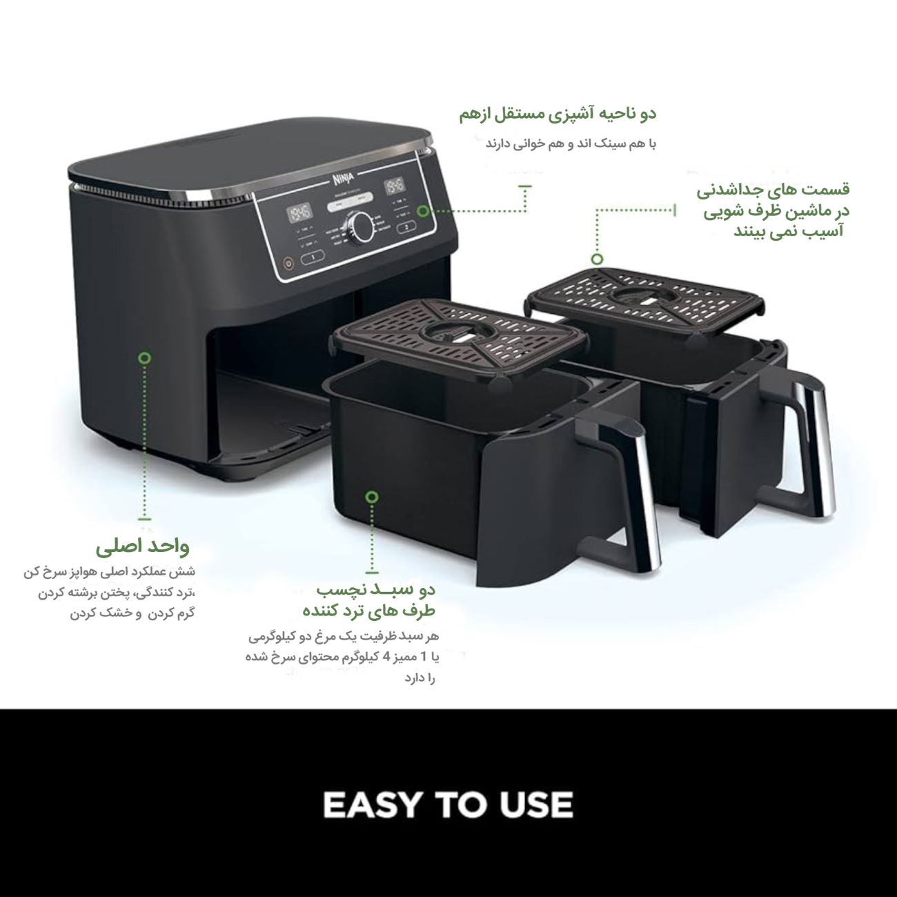 The Ninja AF400 9.5L Air Fryer offers a spacious cooking capacity for larger meals. With 6 versatile cooking programs, it makes preparing a variety of dishes easy and convenient. The automatic shut-off system ensures safety during use, giving you peace of mind. Its non-slip base keeps the fryer stable on any surface, preventing accidents. The air fryer is fully washable, making cleanup a breeze. Ideal for healthier cooking, it uses little to no oil. This model is perfect for busy families or anyone looking to cook quickly and efficiently. The Ninja AF400 is the ultimate kitchen companion for modern cooks.