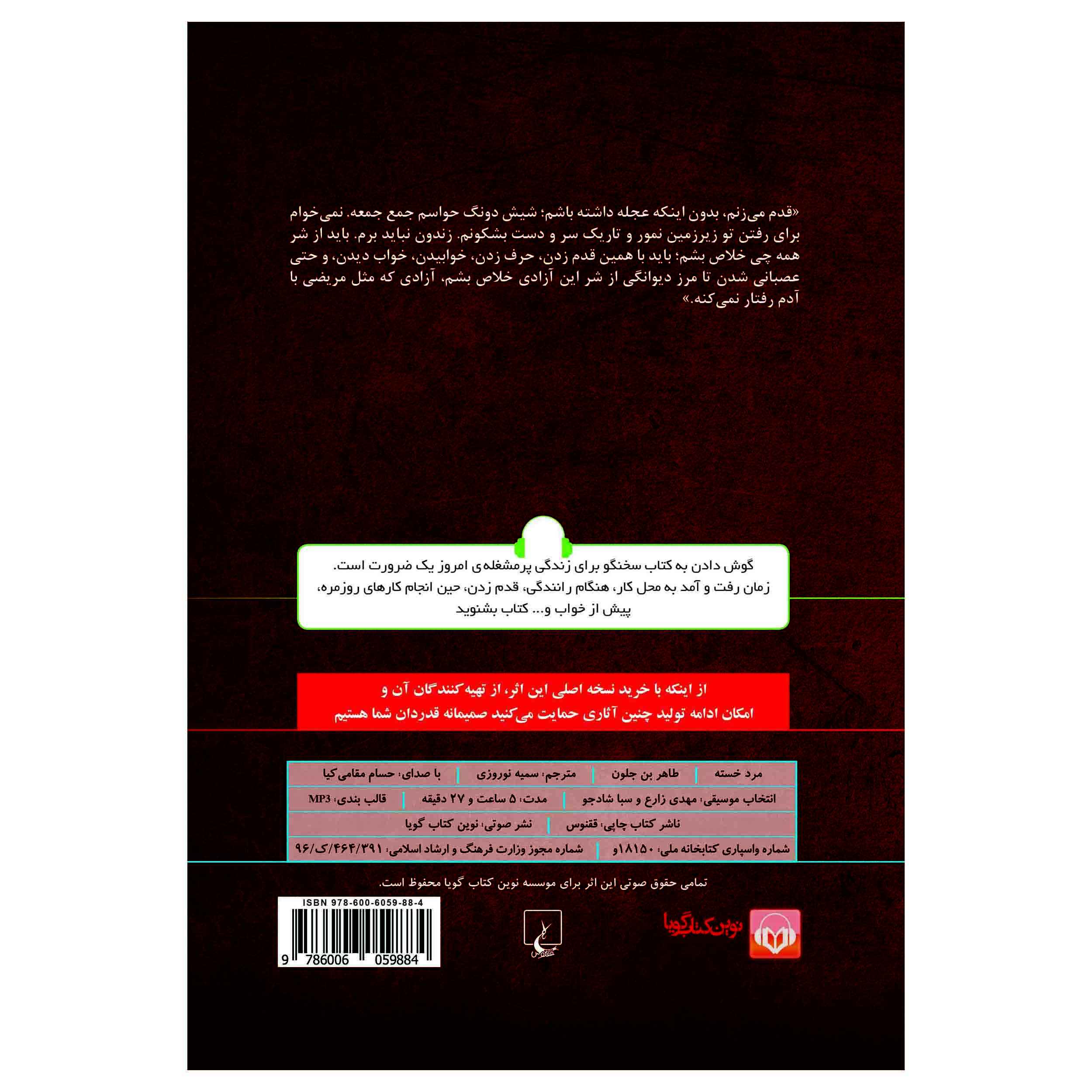 - Persian Title: کتاب صوتی مرد خسته اثر طاهر بن جلون با صدای حسام مقامی کیا