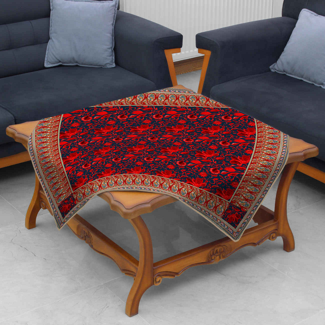 Add a vibrant touch to your home with this Persian style square tablecloth in striking red with a floral pattern. Crafted from quality fabric, its traditional design brings warmth, elegance, and cultural charm to any space, making it a versatile accent for both everyday use and decorative settings. The square shape and neatly finished edges create a polished and stylish look. Lightweight yet durable, this tablecloth enhances the atmosphere of your dining or living area while maintaining practicality. Its timeless Persian-inspired floral design blends beautifully with both modern and classic interiors, adding a pop of color and cultural elegance. Perfect for family gatherings, festive occasions, or simply as a decorative highlight, this red floral Persian tablecloth combines functionality with tradition. It also makes a thoughtful gift for those who appreciate cultural artistry and stylish home décor, offering a unique way to celebrate elegance and heritage in everyday living.