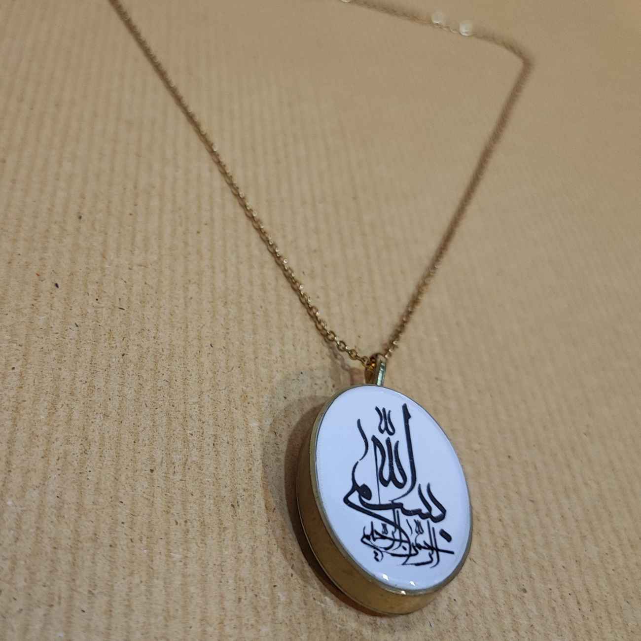 Crafted with intention and spiritual meaning, this unique necklace showcases two powerful Islamic inscriptions. One side of the pendant displays Hasbi Allah (Allah is Sufficient for me), a reminder of divine reliance and inner peace. On the reverse side, the beautiful verse Bismillah (In the name of Allah) signifies the beginning of every good deed and act with faith. The necklace pendant is made of brass and features the sacred names on two different sides, encased in a resin coating. This clear, protective layer not only enhances the clarity of the inscriptions but also ensures lasting durability and shine, making the piece suitable for daily wear or special occasions. Paired with a 45 cm gold-colored stainless steel chain, this piece blends elegant design with spiritual symbolism. The chain’s finish is long-lasting, offering both beauty and resilience over time. Whether worn as a personal token of faith or given as a thoughtful gift, this necklace is a meaningful addition to any collection.