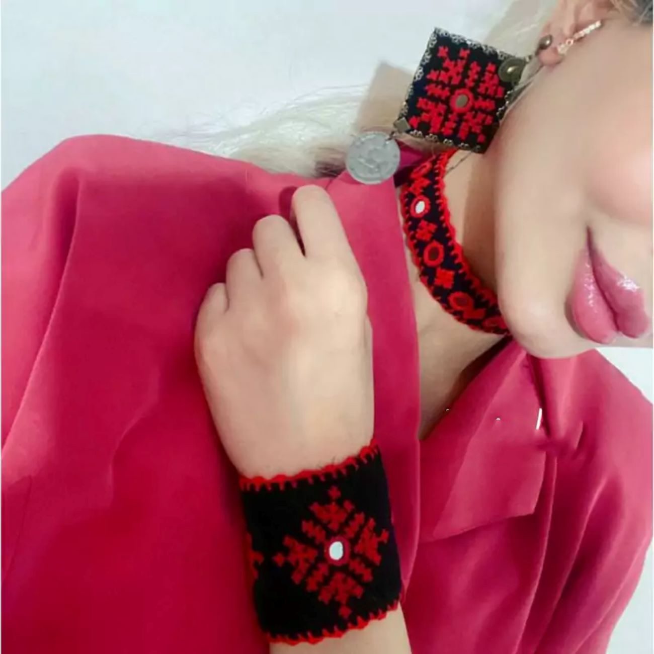 Step into the captivating world of Persian artistry with our Embroidered Jewelry Set, meticulously crafted to embody the essence of Iran’s cultural heritage. Inspired by traditional Persian motifs and styles, each piece in this set is adorned with intricate embroidery, reflecting the timeless elegance of Persian design. From delicate floral patterns to geometric motifs, every detail is meticulously stitched to perfection, creating a stunning ensemble that exudes opulence and sophistication. Whether worn together as a complete set or individually to complement your style, each piece adds a touch of elegance and grace to any occasion. Elevate your ensemble with the enchanting allure of our Persian-inspired Embroidered Jewelry Set.