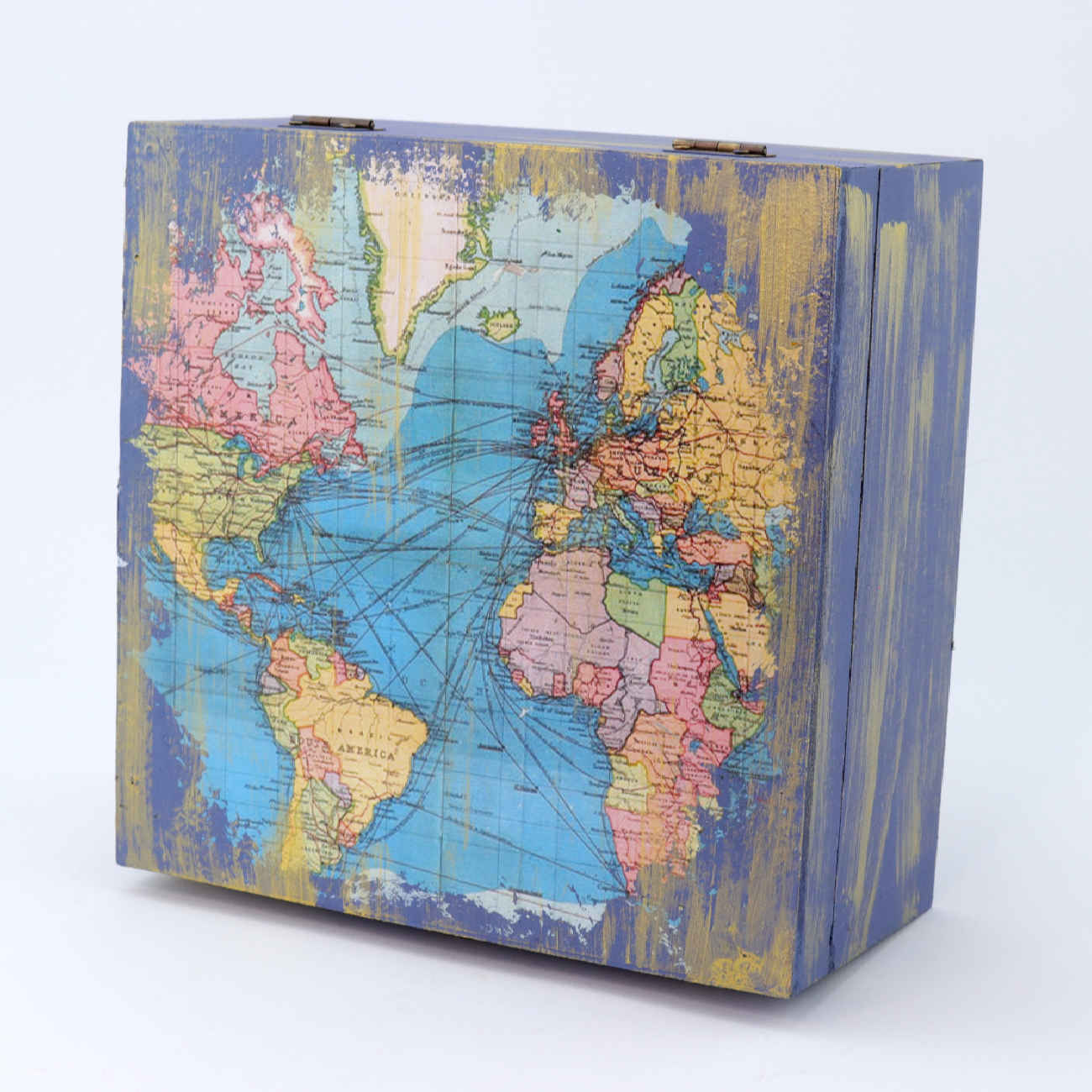 Price and Buy Unique Wooden Tea Box with a World Map Print