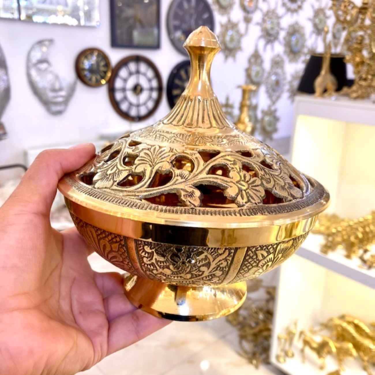 Price and Buy Vintage Brass Sugar Bowl with Intricate Lid Design