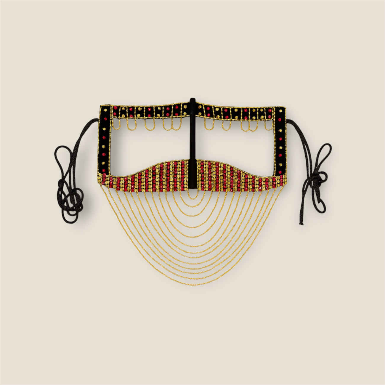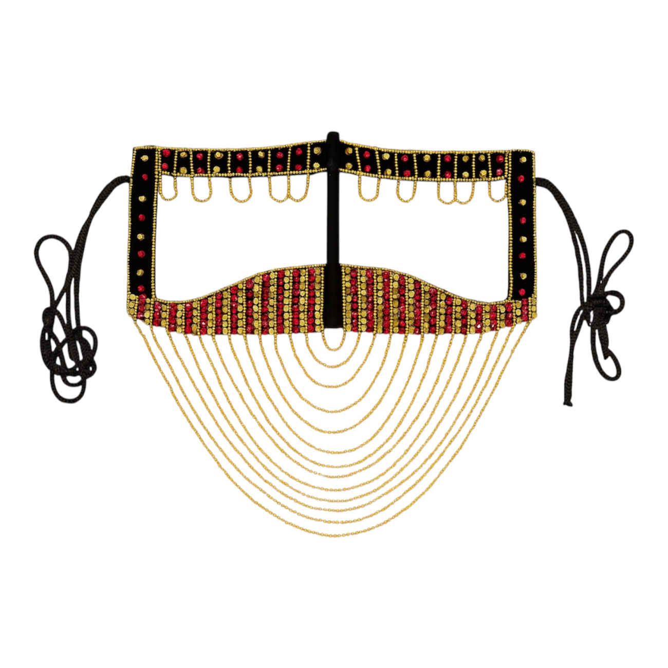 Elevate your look with this handcrafted rhinestone burqa featuring a gold crescent chain. Carefully made by skilled artisans, each burqa showcases sparkling rhinestones that shimmer beautifully, combined with a gracefully hanging golden chain that adds charm and elegance. This accessory merges tradition with a modern decorative touch, making it perfect for standing out at any occasion. Lightweight and adjustable, the burqa comfortably fits all face shapes while allowing free movement and easy wear. The open-eye design ensures comfort without compromising style, making it ideal for celebrations, cultural events, or photoshoots. A true statement piece for women who love refined, handcrafted accessories, this burqa enhances any outfit with sophistication and flair. Its shimmering details and fine craftsmanship make it not just an accessory, but a symbol of elegance, tradition, and individuality.