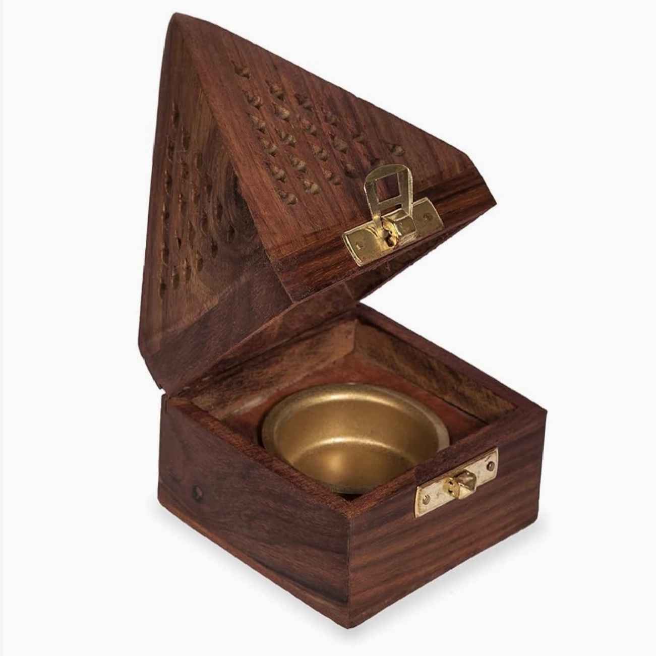 Enhance your aromatic rituals with the Wooden Esfand and Bakhoor Burner in a striking pyramid design. Crafted to work seamlessly with charcoal, this burner combines traditional craftsmanship with modern functionality. Its unique pyramid shape adds a touch of elegance to your space while ensuring efficient heat distribution for optimal burning. Perfect for those who value both style and practicality, this burner provides a sophisticated way to enjoy the rich aromas of esfand and bakhoor.