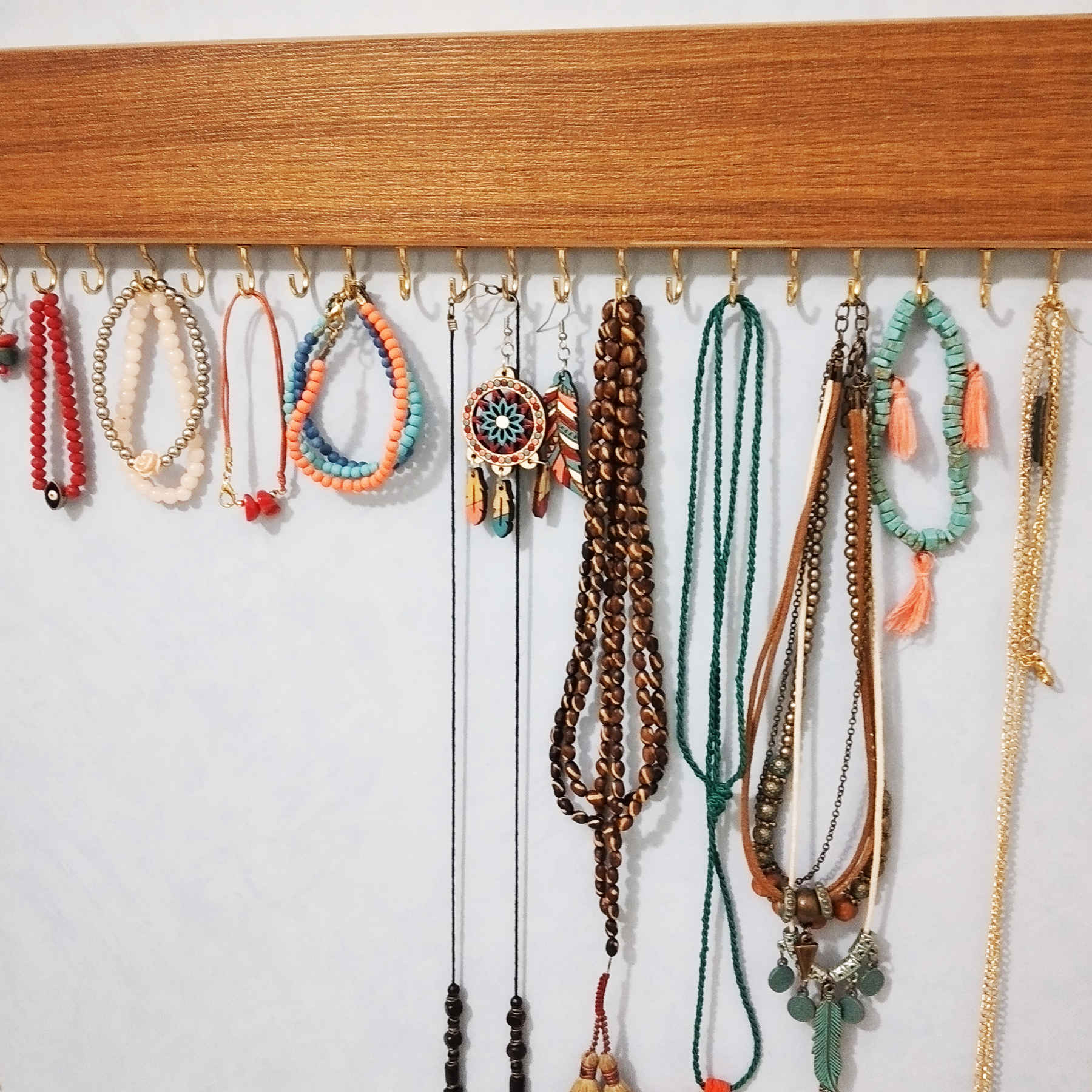 Elevate your jewelry organization with this beautifully crafted wooden holder. Designed for both home and boutique display, it offers a stylish and functional way to showcase your favorite accessories. The natural wood finish adds warmth and elegance to any space, complementing a variety of décor styles. Featuring multiple slots, hooks, and compartments, it provides ample storage for rings, earrings, bracelets, and necklaces. Keep your jewelry tangle-free and easily accessible while adding a touch of sophistication to your dresser, vanity, or store display. Durable and sturdy, this organizer is built to last, ensuring your precious pieces remain safe and well-arranged. Its compact yet spacious design maximizes storage without taking up too much space Perfect for personal use or as a thoughtful gift for jewelry lovers, this holder combines practicality with aesthetic appeal. Enjoy a clutter-free, organized, and stylish way to display your treasured accessories.