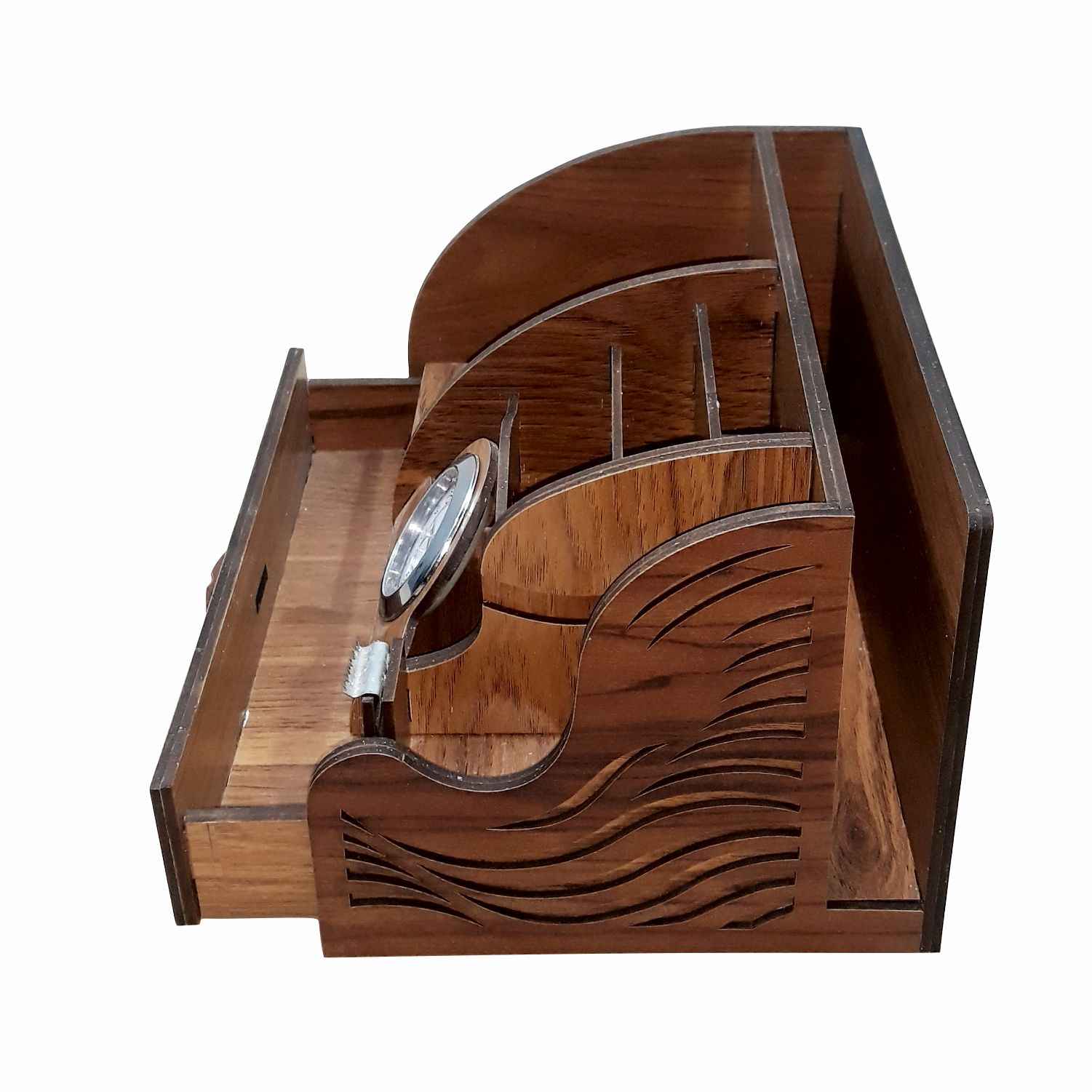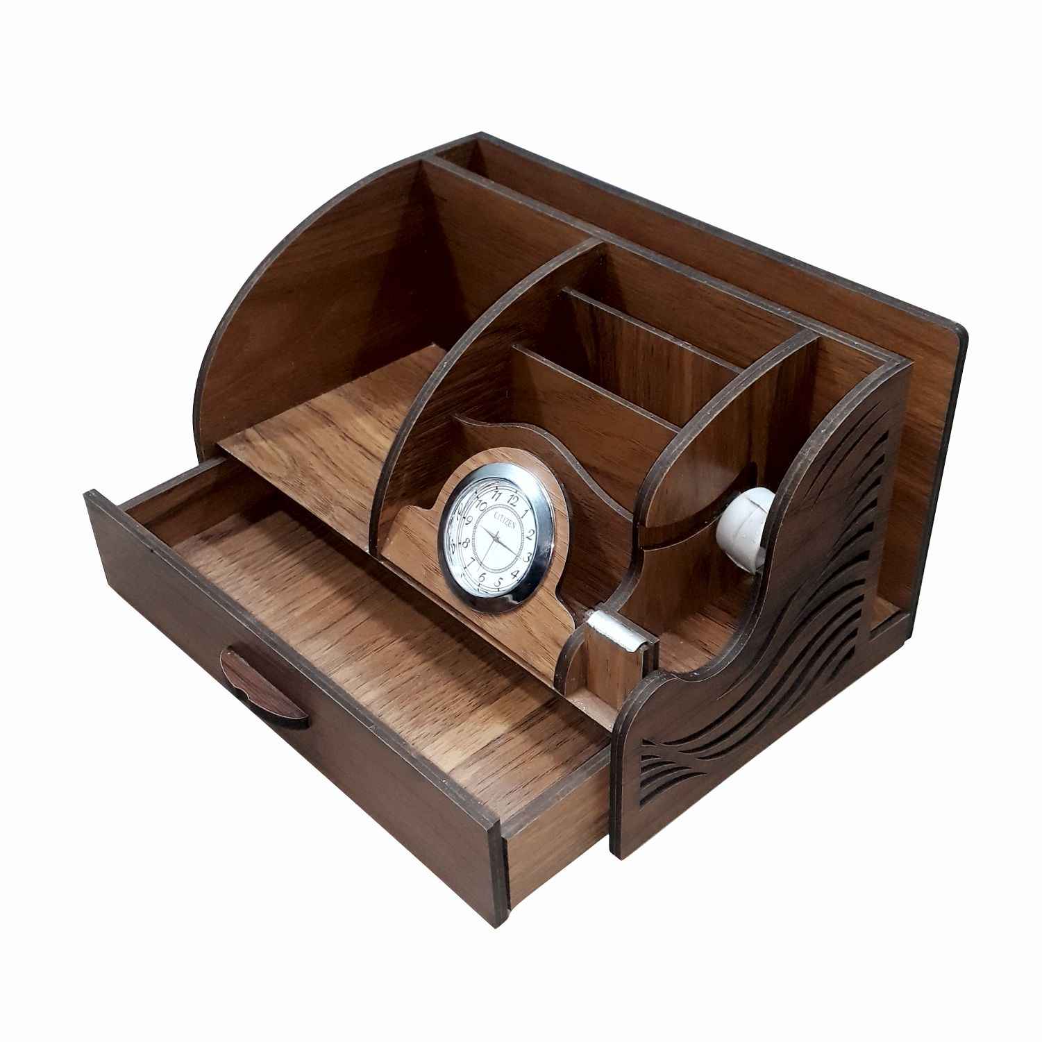Immerse yourself in the fusion of elegance and functionality with our Wooden Office Desk Organizer, complete with a built-in clock. Carefully crafted from premium wood, it exudes sophistication while offering practical solutions for workspace organization. Never miss a beat during your busy workdays with the integrated clock, ensuring you stay on schedule effortlessly. Organize your essentials such as pens, notes, and accessories neatly within its compartments, promoting efficiency and productivity. Its sleek design adds a touch of professionalism to any desk, making it a versatile choice for both home offices and corporate settings. Elevate your workspace ambiance with this stylish and functional desk accessory, keeping your essentials organized and your workflow seamless.