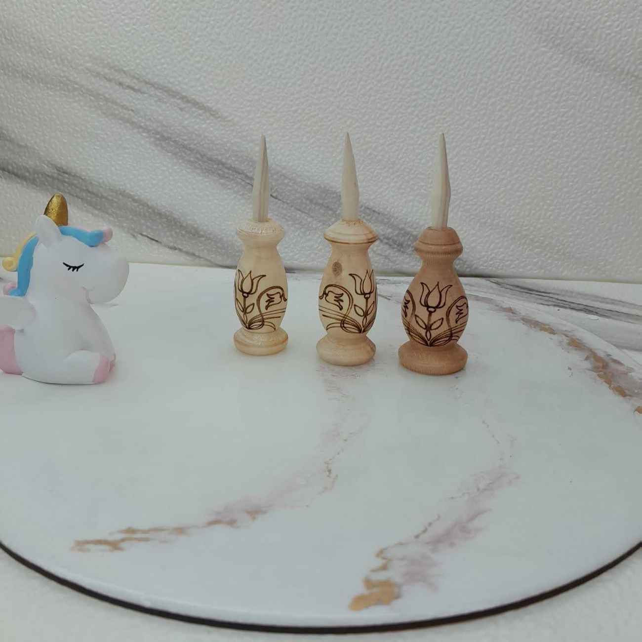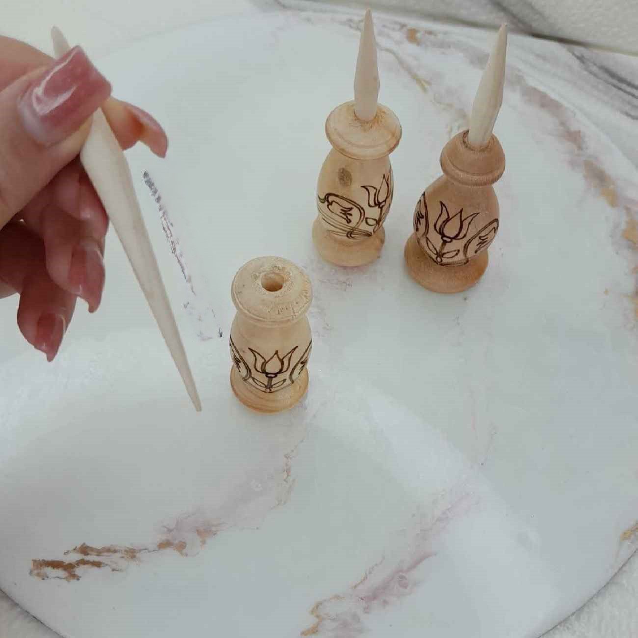 This beautifully crafted set of five kohl holders showcases traditional Persian artistry, each delicately carved from high-quality wood. The holders feature intricate flower designs, meticulously engraved to highlight the elegance of Persian culture. The smooth finish and natural wood grain offer a touch of rustic charm, blending functionality with aesthetic appeal. Perfect for storing kohl or other small beauty essentials, these holders are both decorative and practical. The set serves as a unique gift or a stunning addition to any vanity, celebrating the timeless beauty of Persian craftsmanship and design.