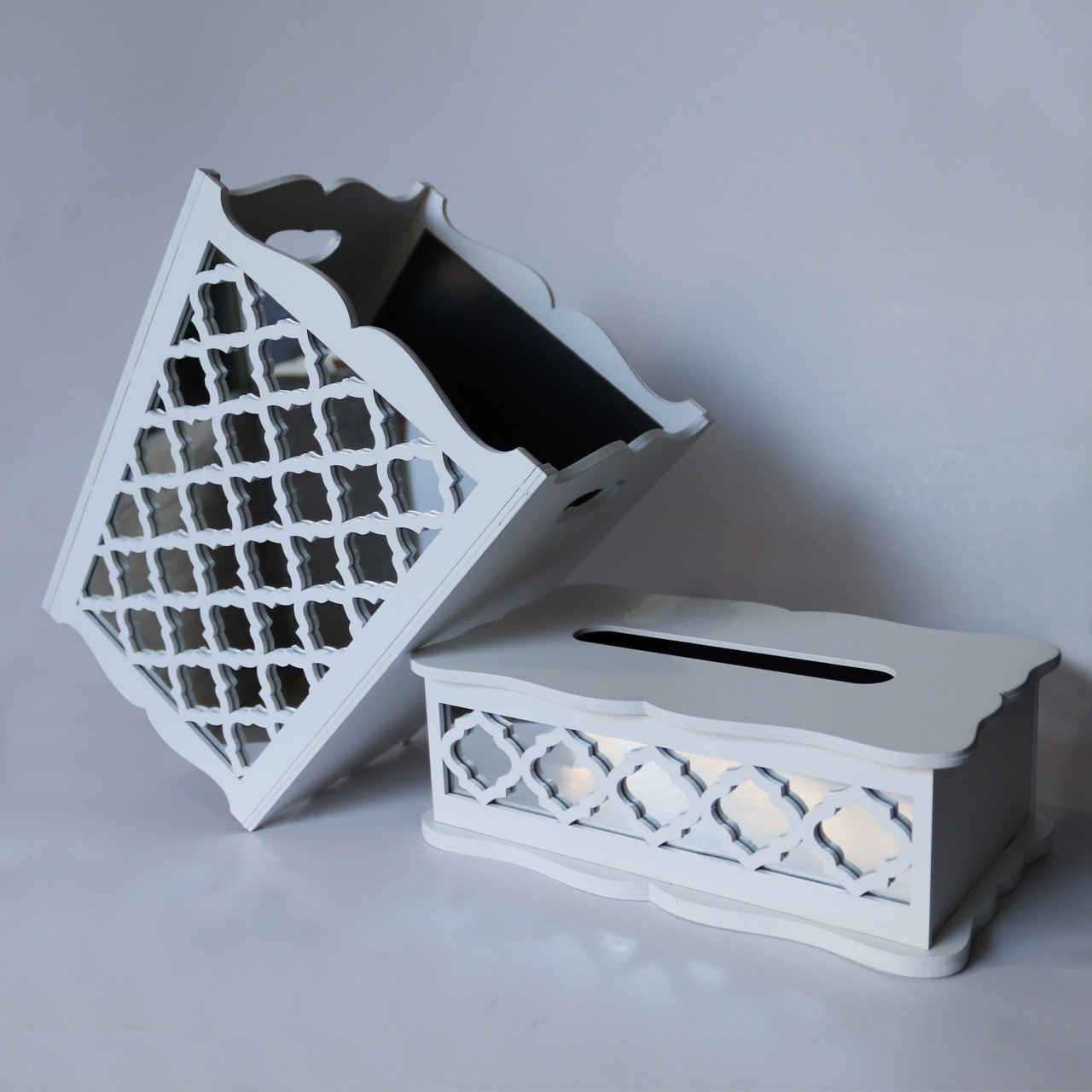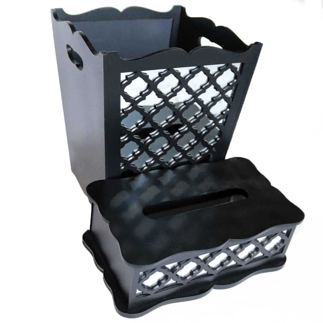- Set Includes: Waste Basket & Tissue Box Cover