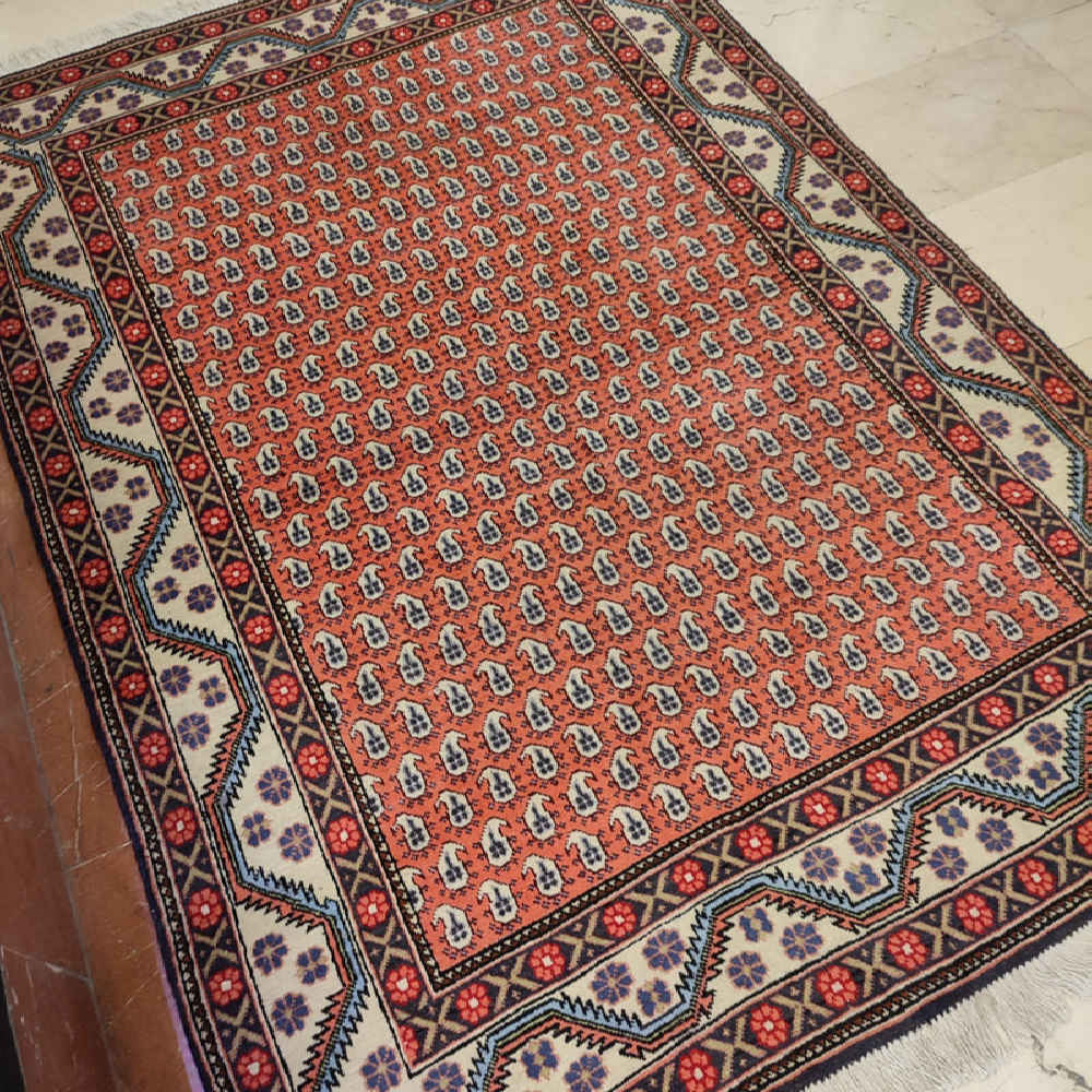 Weight 7500 g Dimensions 190 × 134 × 5 cm Style Tribal Shape Rectangular Product Type Persian Area Carpet Pattern All-over Origin Iran Regional Origin Ardabil Dye Type Natural Knot density 40 raj Warp Cotton Weft Cotton Lint Kork Wool Construction Hand-knotted General Size Category Medium Material Kork Wool Color Copper Condition Used