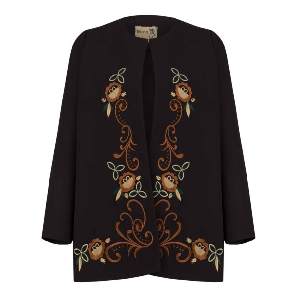 Price and Buy Round Neckline Manto with Embroidery Floral Design for Any Occasion in Black