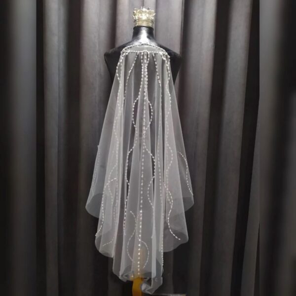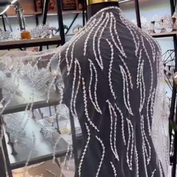 Price and Buy Waterfall-Style Bridal Veil, Entirely Hand-Embroidered With Unique and Exquisite Crystal Pearls. Length 120 cm