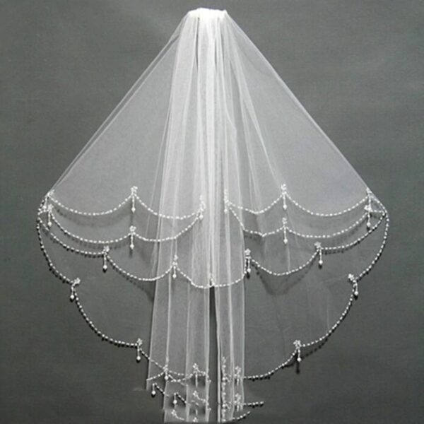 Price and Buy Two-Layer Bridal Veil with Crystal and Pearl Embroidered Edging