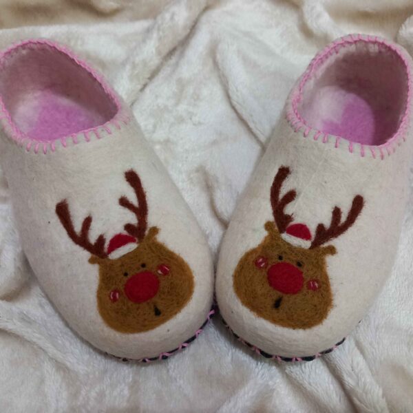 Price and Buy Wool Felt Slippers with Handcrafted Reindeer Pattern