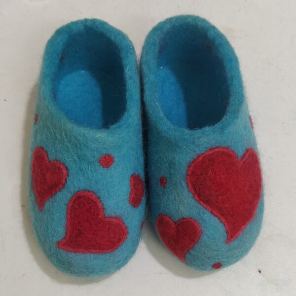 Price and Buy Artisan Wool Felt Slippers with Hand-Stitched Red Heart Pattern