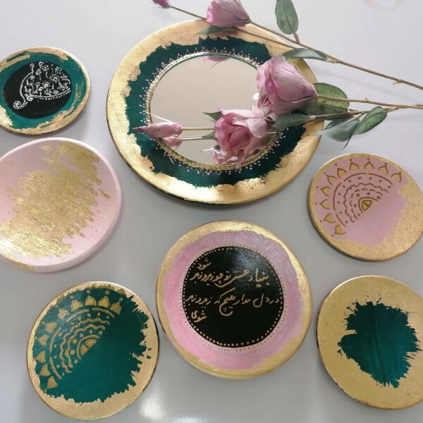 Price and Buy Handmade Haft Seen Set with Elegant Geometric & Bird Pattern Painted Design – Celebrate Persian New Year in Style Set of 7