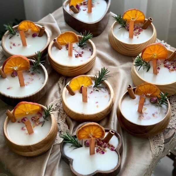 Price and Buy Aromatic Botanical Candles with Wood Jar and Citrus Design